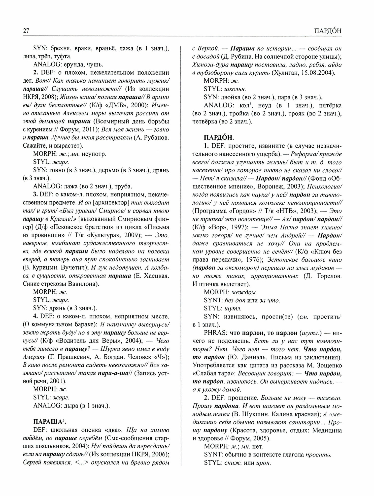 В словаре содержится описание лексики современной русской разговорной речи. Словарь имеет экспериментальный характер и, в отличие от большинства академических толковых словарей, не является нормативным. Задачей составителей было с возможной полнотой отразить в словарной форме семантические, грамматические, сочетаемостные, стилистические свойства лексико-фразеологических средств, используемых в повседневной речи современного городского жителя, а также особенности их употребления в разных ситуациях неформального, заранее не подготовленного спонтанного общения. Материалом для словаря послужили записи устной русской речи второй половины XX - начала XXI века, современная художественная литература, публицистика, пресса, теле- и радиопередачи, киносценарии, разные жанры интернет-общения (блоги, форумы, чаты и т. п.).