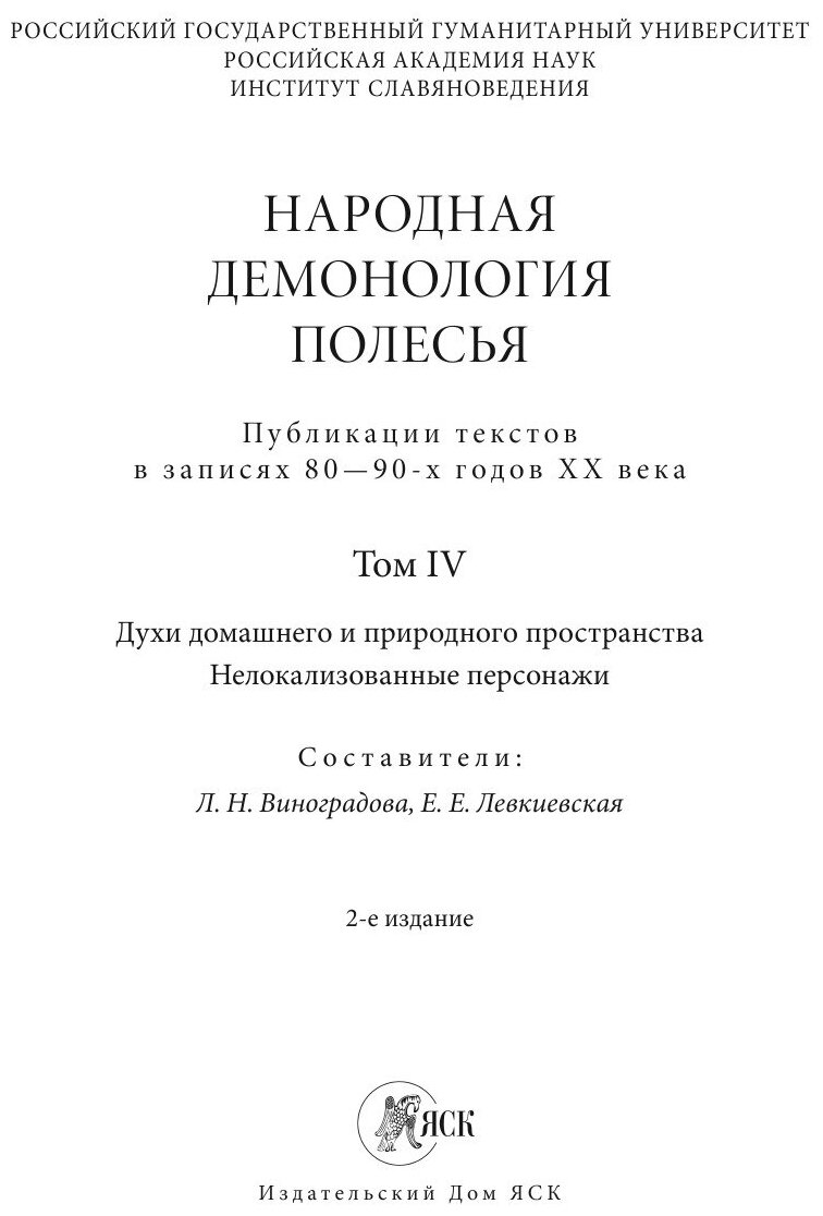 Народная демонология Полесья. Том 4. Духи домашнего и природного пространства. Нелокализованные перс (Виноградова Людмила Николаевна,Левкиевская Елена Евгеньевна); Языки славянских культур, 2020