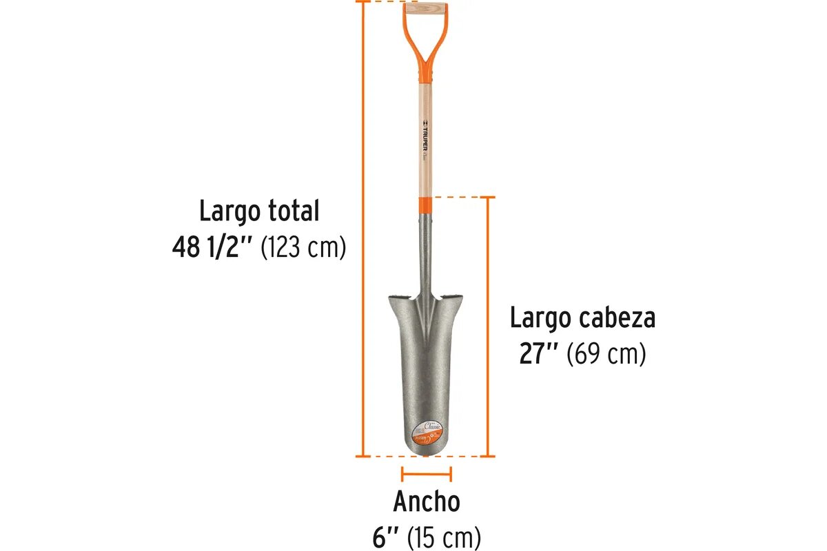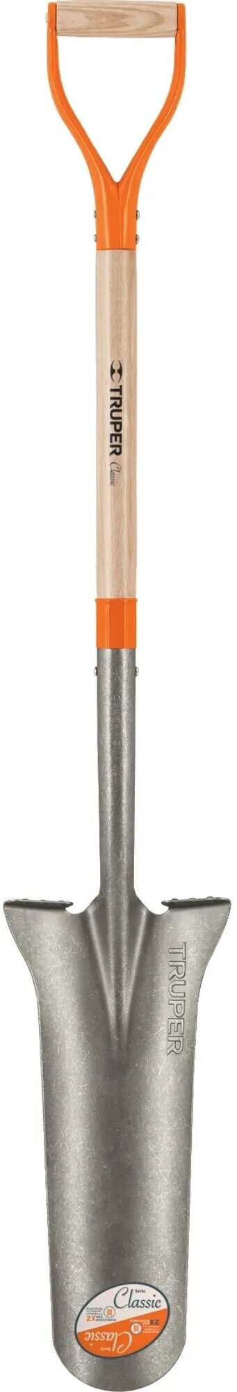 **Лопата дренажная Truper ** — надежный инструмент для копания ям под деревья и кустарники, траншей для подземных коммуникаций и прочих объектов на садовом участке. Благодаря компактному размеру (общая длина — 125 см) и небольшому весу (2 кг) ее удобно транспортировать и хранить.