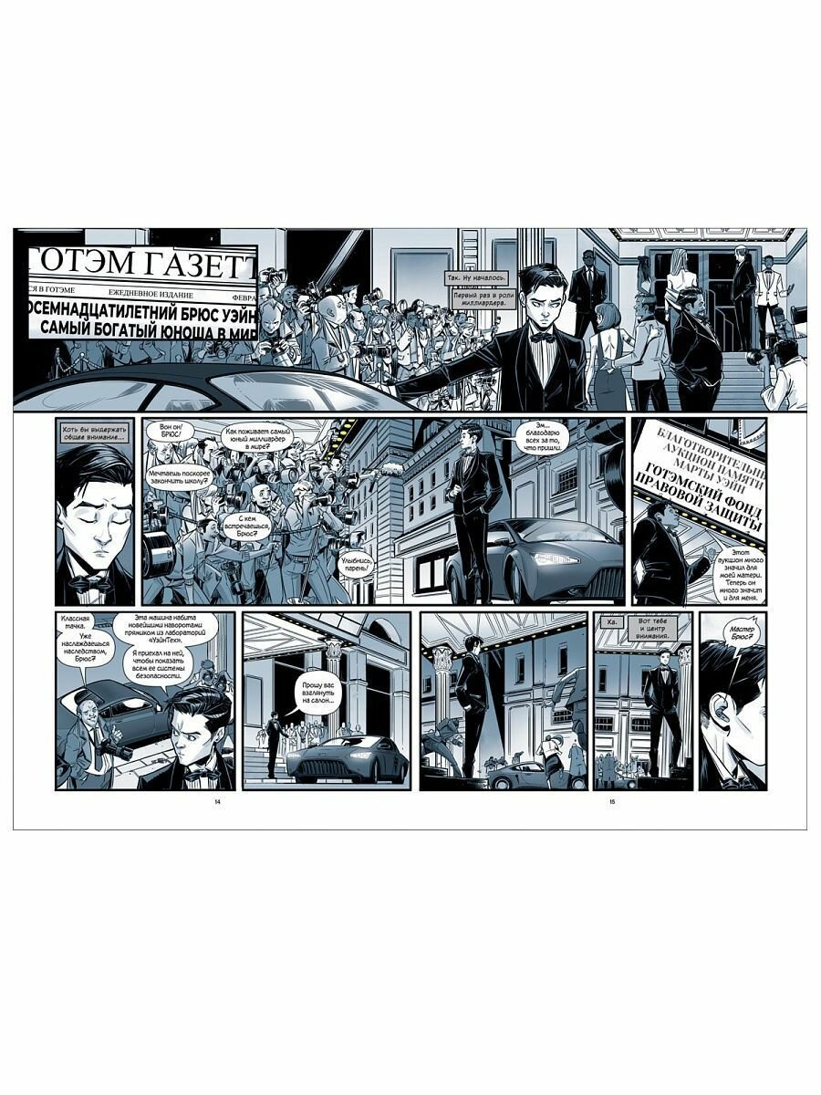 На удивление приятный комикс, отзывов о котором практически нет. Лично у меня данный комикс занимает почётное третье место в моем списке серии "молодые взрослые", первое место, это однозначно Харли Куин разбивая стекло, второе Супергерл быть супер, и третье отведено данному комиксу. В целом данный комикс непримечателен, однако отдать должное авторам всё же стоит, ведь благодаря немного изменённой истории становления героя, и ч/б рисунку, в который иногда вкрапливаются те или иные цвета (напоминая стиль Города грехов в арке о зелёном ублюдке), перед нами блистает совсем не то, что мы привыкли видеть в сериях о Бэтмене. Перед нами вполне сложившаяся личность, и несмотря на юный возраст, Брюс предстаёт перед нами не тем мальчишкой, которым он обычно проводит свое время в разных ориджинах и флэшбеках. Он уверен, его совсем не гложет совесть, не мучают страхи, он ещё не встал на истинный путь возмездия, однако узнаваемый стиль и символ уже на "груди". Он ещё школьник, но уже внедряется в те или иные госучереждения и имеет целый набор технологических штучек, и к слову, некоторые мне пришлись совсем не по душе и только поэтому комикс занимает третье место среди указанных книг выше. На мой взгляд комикс недооценен, и кто ещё не читал или сомневается, однозначно берите, не пожалеете и приятно скоротаете вечер другой, со страницами интересной современной истории Брюса (где он ещё не Бэтмен) и где стильный рисунок захватывает всё внимание.