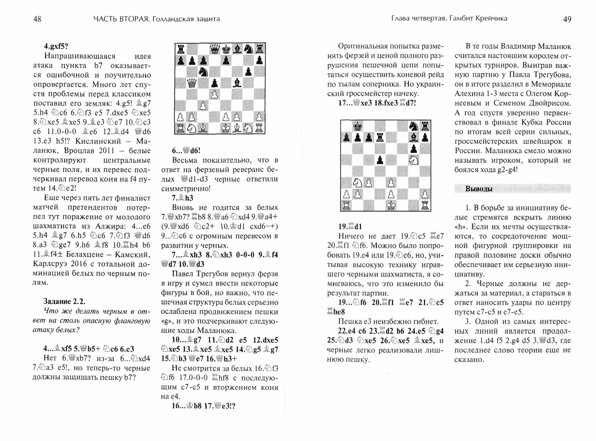 Новая книга известного гроссмейстера, тренера и журналиста посвящена такому оригинальному и эффективному стратегическому приему, как таранный выпад g2-g4 в закрытых началах. С легкой руки шестого чемпиона мира Михаила Ботвинника он прочно вошел в арсенал современных шахматистов, дал толчок к развитию целого ряда дебютных вариантов. На страницах книги нашло отражение творчество ведущих гроссмейстеров, включая чемпионов мира Гарри Каспарова, Владимира Крамника, Виши Ананда и Магнуса Карлсена, которые то и дело бросали вперед на два поля пешку "g" в славянской, голландской и староиндийской защитах, в ферзевом гамбите, защите Нимцовича и других популярных дебютах. Короткие, но весьма познавательные экскурсы в историю позволят читателю увидеть стратегические идеи в их развитии и лучше прочувствовать ресурсы атаки и защиты, а многочисленные задания для самостоятельного решения помогут закрепить полученные знания, чтобы затем опробовать новые методы и приемы в своих партиях.