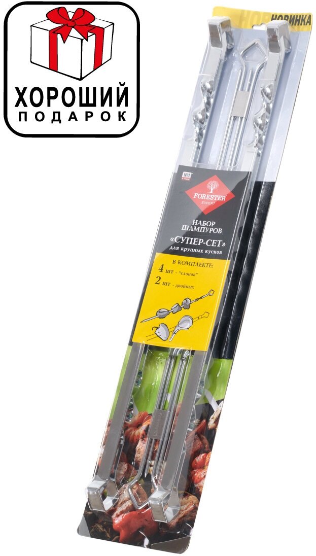 | Комплектация | 4 шампура “Слоны”, 2 двойных шампура. |