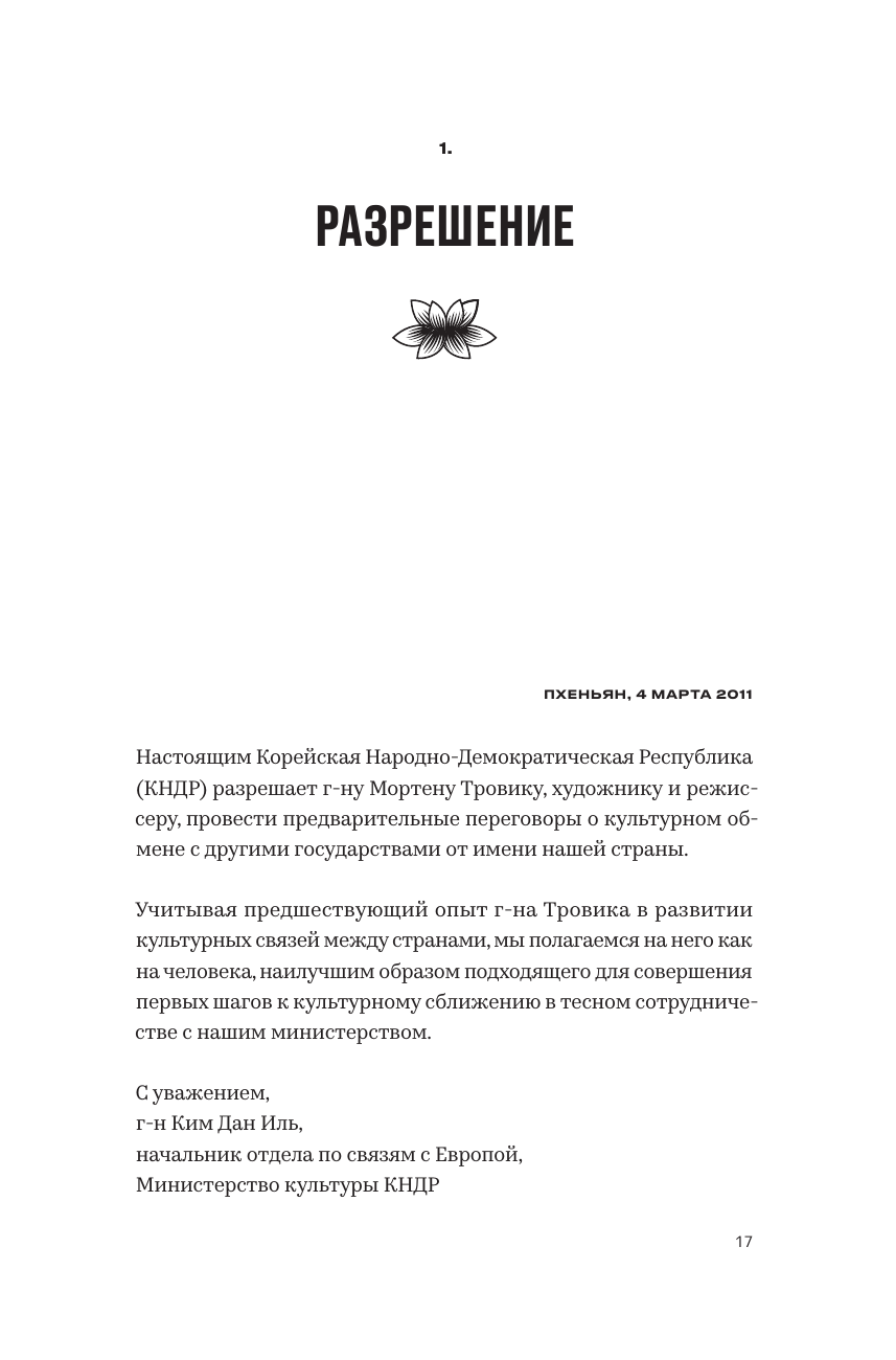 Еще в первой половине книги Тровик Мортен начинает рассказывать об истории Северной Кореи с момента первого правителя - Ким Ир Сена. Читателя знакомят с особенностями менталитета северокорейцев.
