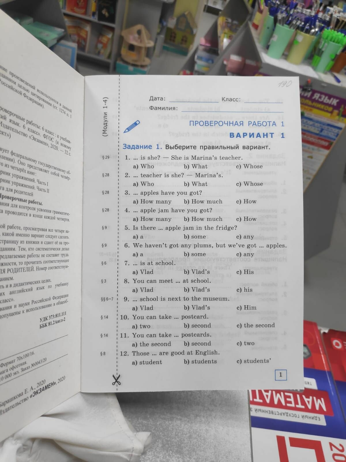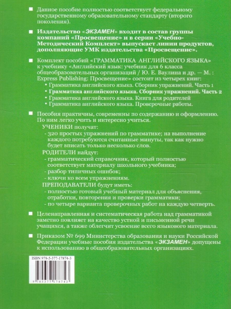 Грамматика Английского языка Проверочные работы 6кл К учебнику Ю. Е. Ваулиной и др. (к новому ФПУ) (Барашкова Елена Александровна); Экзамен, 2020