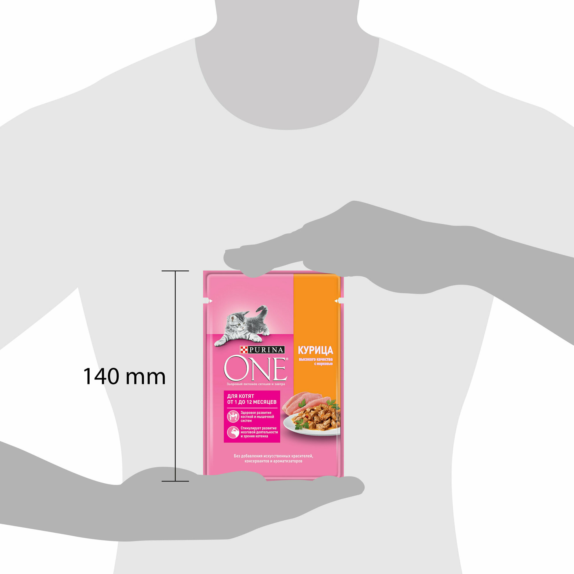 Описание товара:Корм консервированный полнорационный сбалансированный Purina One (Пурина Уан) специально разработан ветеринарными врачами и диетологами Нестле Пурина ПетКэр. Корм Purina One (Пурина Уан) — это сочетание отличного вкуса и гарантия пользы. Вы можете быть уверены, что с кормом Purina One (Пурина Уан) Ваша кошка получит питание высокого качества с отличным вкусом для поддержания ее здоровья.Состав товара:Мясо и мясные ингредиенты (включая курицу), экстракты растительного белка, рыба и продукты ее переработки, масла и жиры, минеральные вещества, аминокислоты, продукты переработки растительного сырья, овощи (морковь), загустители, сахара, витамины.Способ приготовления:Рекомендуемая суточная норма для котят от 6 до 12 недель составляет 1-4 пакетика в день; для котят от 12 до 26 недель 2-6 пакетиков в день, для котят от 26 до 52 недель 6-3 пакетиков в день. Кормление желательно разделить Минимум на два приема. Каждый котенок развивается по‐своему, поэтому количество корма и/или время кормления могут быть скорректированы в зависимости от уровня его активности и роста. Для беременных или кормящих кошек норма кормления составляет 3-5 пакетиков, возможно сочетать также с сухим кормом Purina One (Пурина Уан) для котят. Подавайте корм комнатной температуры. Следите за тем, чтобы у Вашей кошки всегда была свежая чистая питьевая вода.Меры предосторожности:Упаковка не предназначена для игры. Для предотвращения риска удушения храните в недоступном для детей и животных месте. Хранить в сухом прохладном месте. После вскрытия хранить в холодильнике максимум 24 часа.