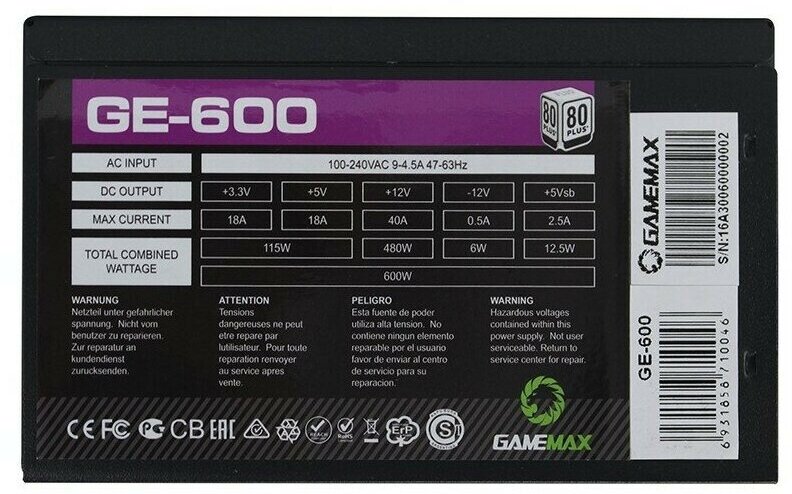 - Обзор Блок питания GameMax GE-600 600W из Rozetka
