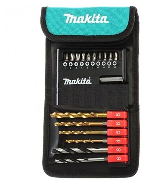 | Комплектация | набор включает в себя набор насадок 10 шт. Makita D-30651 с магнитный держателем и битыPZ1, PZ2, PZ3, PH1, PH2, PH3, T15, T20, T25, T30. А так же 6 шт. сверл с хвостовиком 1/4 дюймапо дереву 6, 8 мм; по металлу 4, 5, 6, 8 мм. |