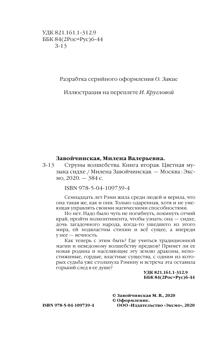 Цветная музыка сидхе. Струны волшебства 2. Милена Завочинская. М., Эксмо, 2020г.