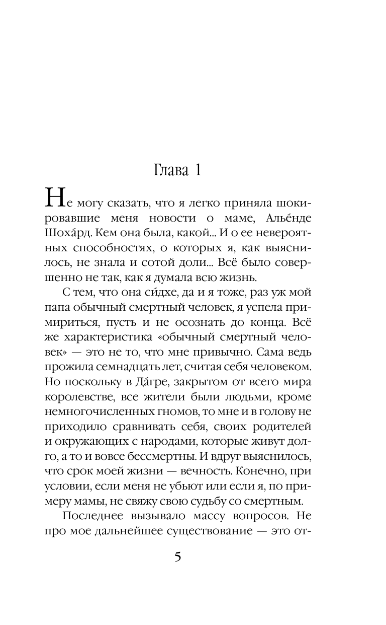 Но нет. Надо было чуть не погибнуть, покинуть отчий край, пройти полконтинента, чтобы узнать: она - сидхе, дочь загадочного народа, когда-то ушедшего из этого мира, ей подвластны стихии и все сущее, а впереди у нее - вечность.