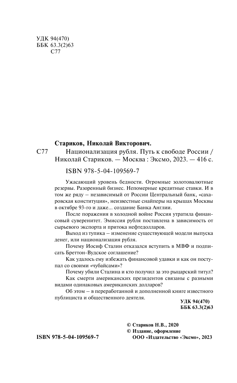 Национализация рубля. Путь к свободе России (Стариков Николай Викторович); Эксмо, Редакция 1, 2020