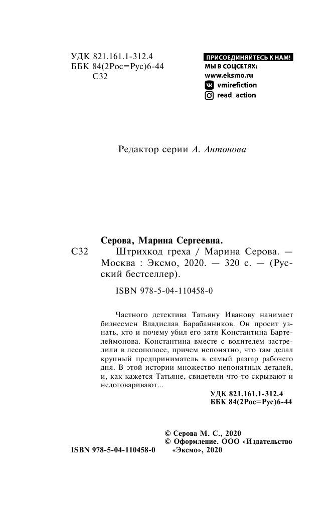 Книга: Штрихкод греха (Марина Серова); Научная книга, 2020