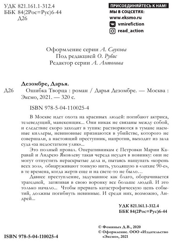 Книга: Ошибка Творца (Дарья Дезомбре); Эксмо, Редакция 1, 2020