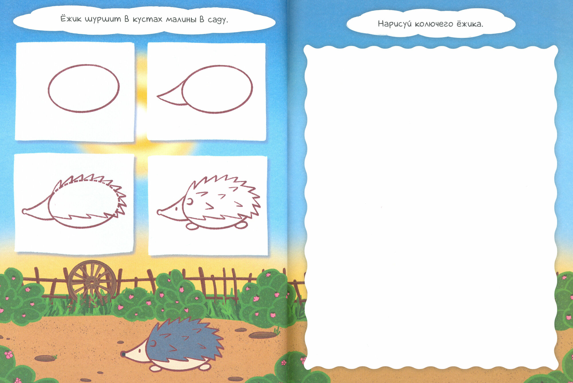 Посмотри, как много интересного в деревне: пушистые овечки, непоседливые поросята и большой железный трактор. Вот бы всё это нарисовать!