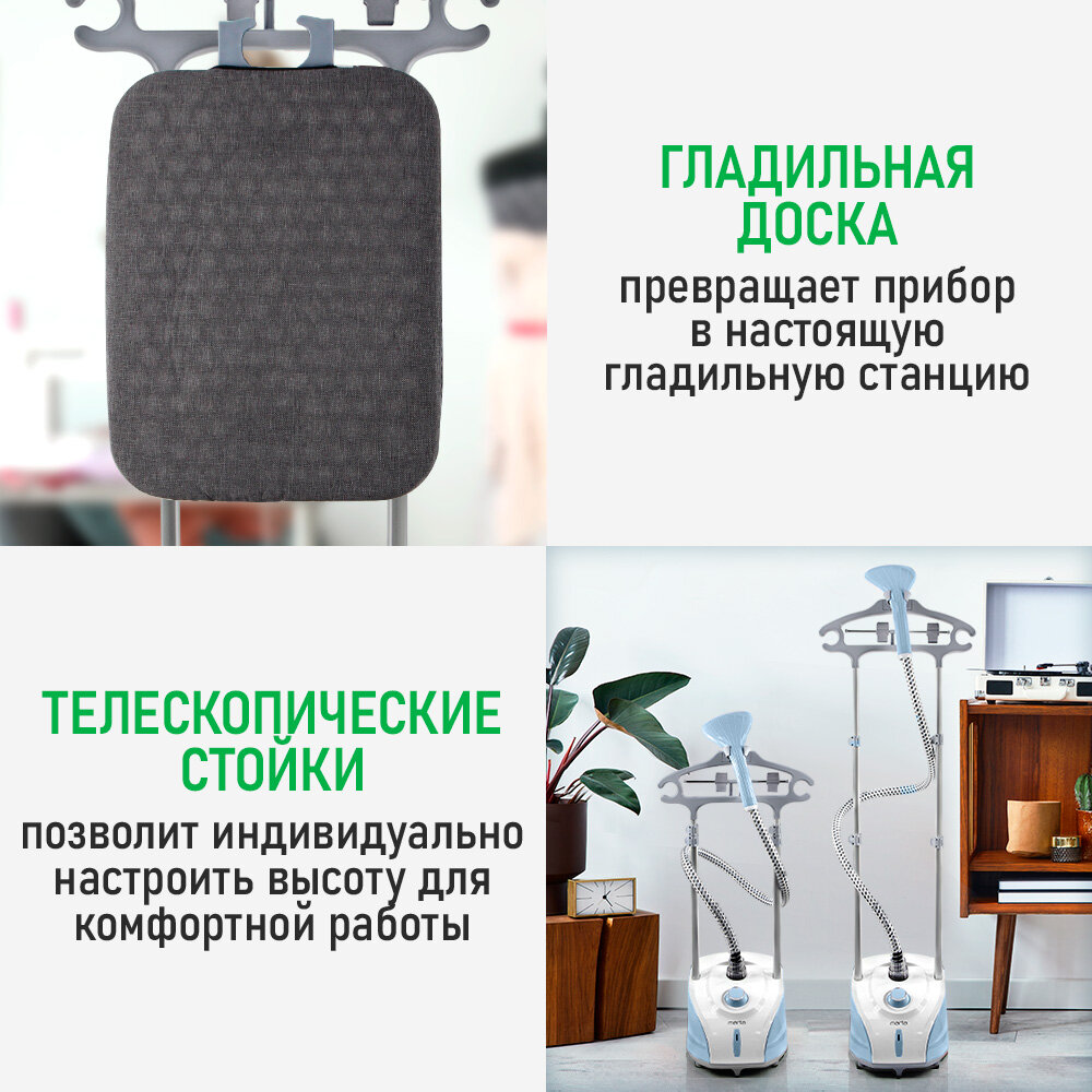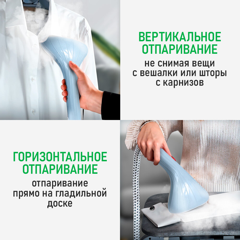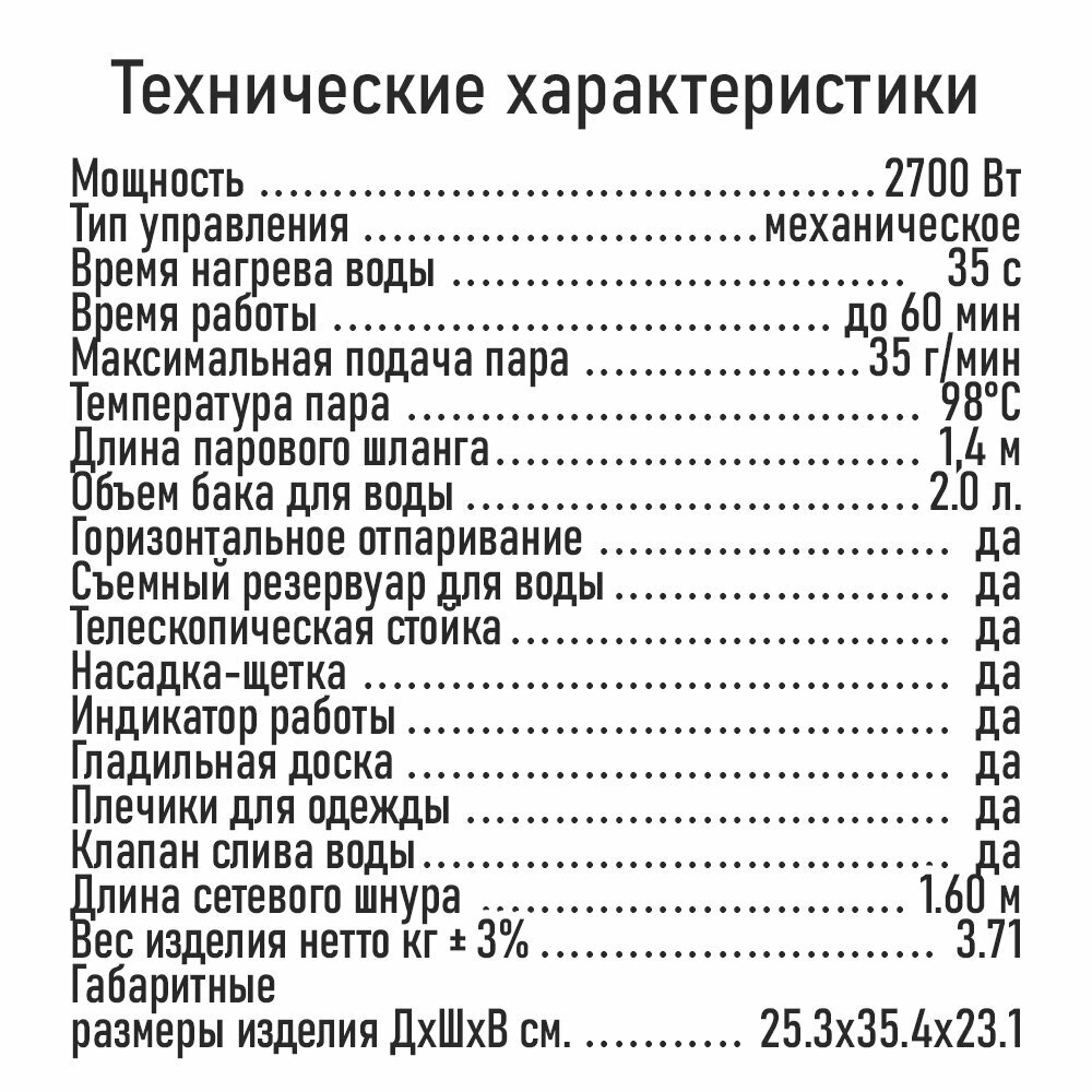 | Комплект поставки | отпариватель; насадки; гладильная доска; телескопический стойки; защитная рукавица; руководство по эксплуатации |