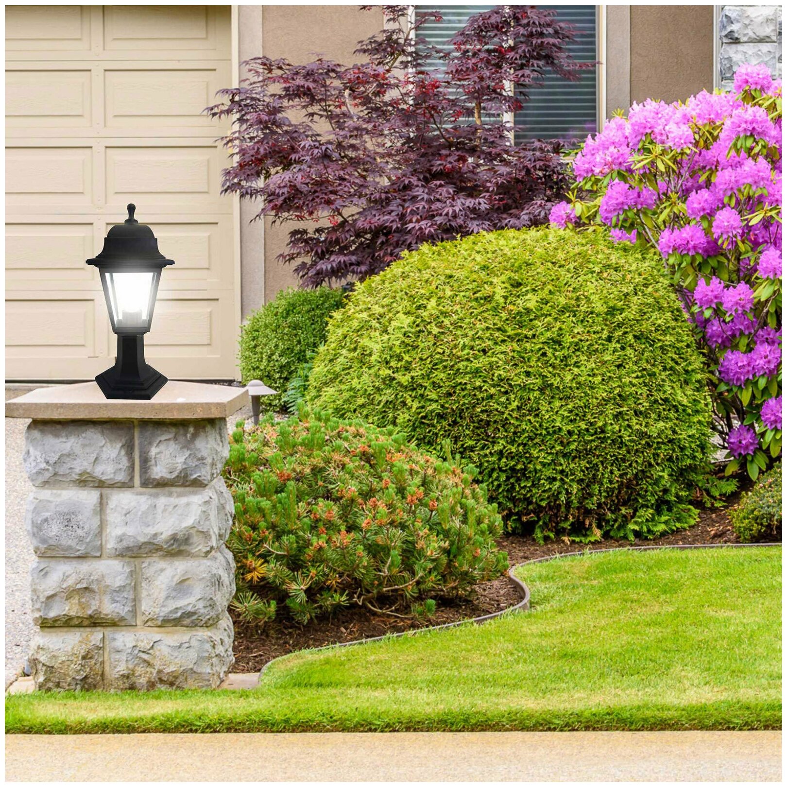 Среди разных видов уличных светильников очень оригинальны напольные модели. Их хорошо использовать на дачных участках. Яркий тому пример - четырехгранный светильник черного цвета с рассеивателем. Он небольшой по высоте и очень изящный. Материал, из которого он сделан, прочный и устойчивый к любым погодным явлениям. Плафон светильника стеклянный, позволяющий равномерно рассеивать свет. С установкой светильника справится каждый. Максимальная мощность ламп, которые к нему подходят, 60Вт.