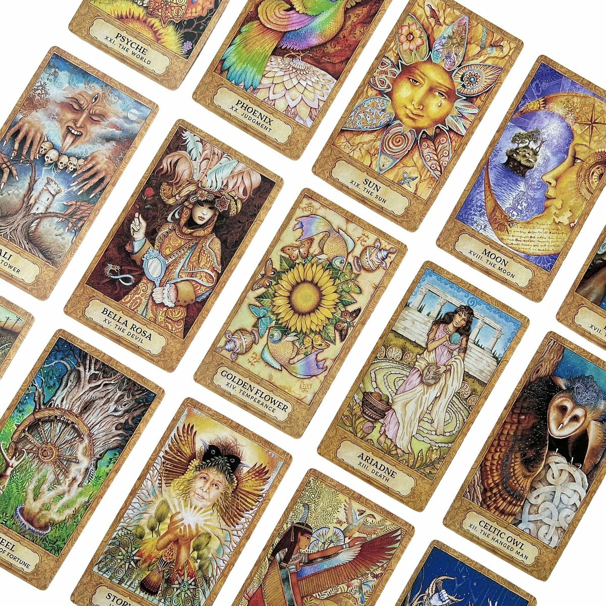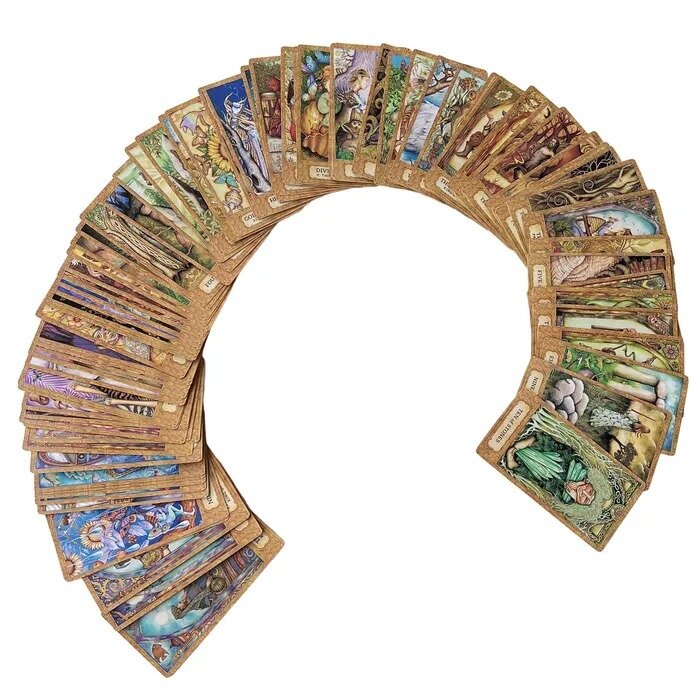 Зачем, ну зачем называть Таро то, что и близко им не является? Это оракул! И пусть автор сделала в колоде 22 Старших Ариана, 56 Младших и Двор, от этого данная колода Таро не стала. Это вольные фантазии авторов, подписи Арканов - тоже. Да, иллюстрации симпатичные, сочные, МБК так же постарались сделать информативным. Картон приятный на ощупь, карты хорошо тасуются. Цена с нынешней скидкой, более чем приятная.