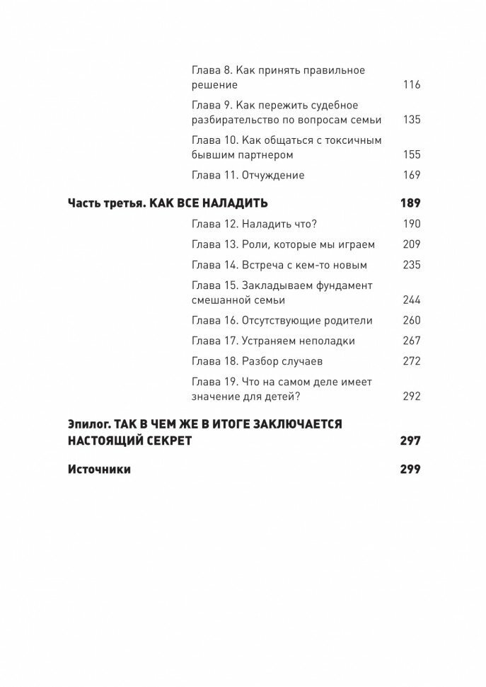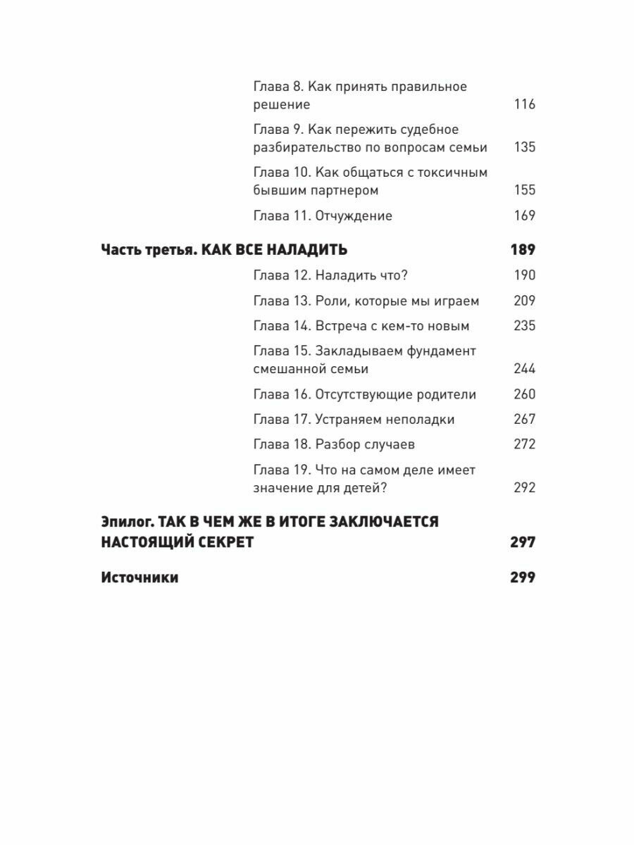 Книга на серьезную тему - развод и жизнь детей в семье с неполным составом. Главная мысль книги - такая неполная семья - это нормально, и даже в такой семье может быть лучше, чем в семье полной, но несчастной. Про травмы детей, про то, как объяснить, как общаться с бывшим супругом/супругой. Про то, что такие семьи были всегда в истории человечества. Книга дает поддержку моральную, помогает посмотреть на многие вопросы под другим углом и вселяет веру, что все будет хорошо, все это - нормально!