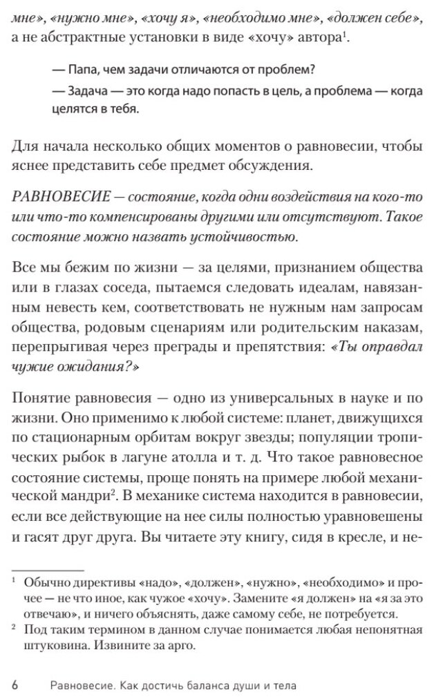Мы не знаем, что будет с нами завтра, какой сюрприз преподнесут нам близкие, политики, природа. Мы угодили в мир неопределенности. Чтобы жить в нем успешно и приобретать навык перевода проблем в задачи нам просто необходим некий внутренний стержень. Этим стержнем может стать наше внутреннее душевное равновесие. Оно есть у каждого и в каждом. Только не все удосужились ознакомиться с инструкцией по его применению и практическому использованию. Для этого и создана эта книга. Проблема равновесия была и остается актуальной навсегда. Вокруг нас все больше ситуаций, сфер, людей и всего остального, что выводит нас из него. Тут уже жить некогда! Учитесь, пока не поздно выстраивать систему собственного душевного равновесия. Читайте, усваивайте, осваивайте, практикуйте и у вас получится! Не боги горшки обжигают. Все мы все и всё когда-то и что-то делаем в первый раз.