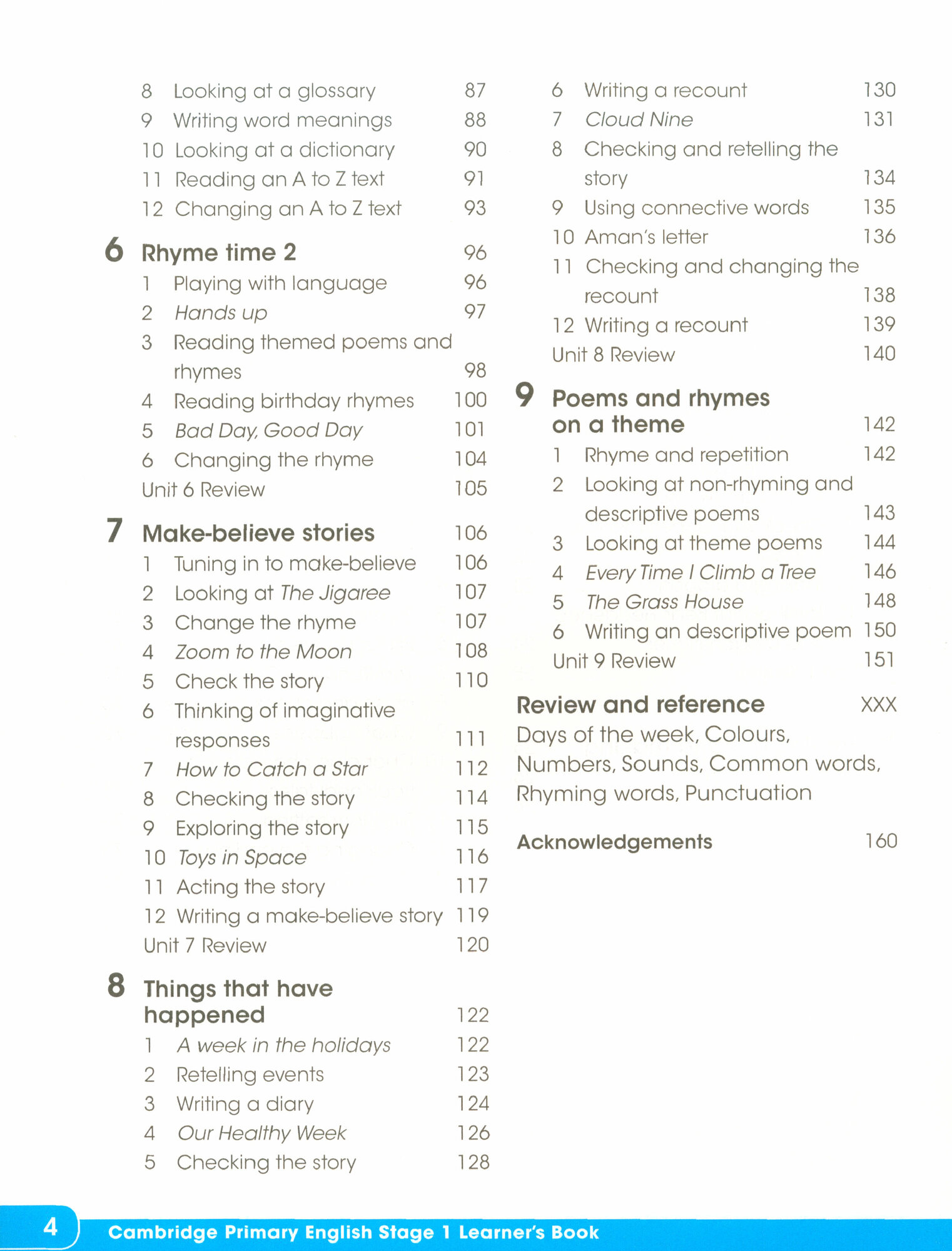 Lively international fiction, non-fiction and poetry texts are the basis for teaching reading and writing skills, including comprehension, grammar, punctuation, phonics, spelling and handwriting. Learners also practise their spoken English to build vocabulary and confidence through class and group discussion. Each stage contains three core components (Learner's Book, Activity Book, and Teacher's Resource Book with accompanying CD-ROM) which are fully integrated and offer a complete solution to teaching Cambridge Primary English. Also available are Phonics Workbooks A and B, providing an essential foundation in phonics skills.