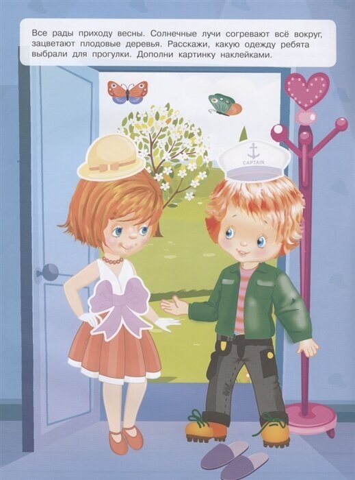 Ребенок сможет подобрать одежду для героя книжки и его друзей — и дополнить картинку стикерами.