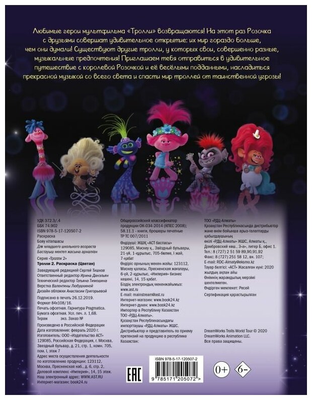 Тролли 2. Раскраска (Цветан) (Данэльян И., ред.); АСТ, 2020
