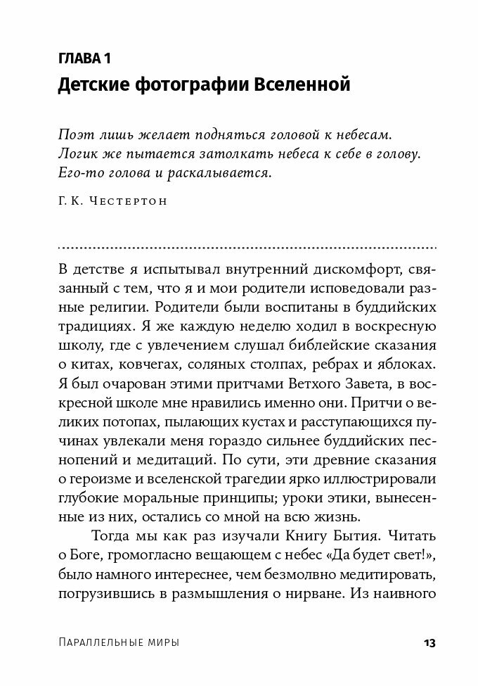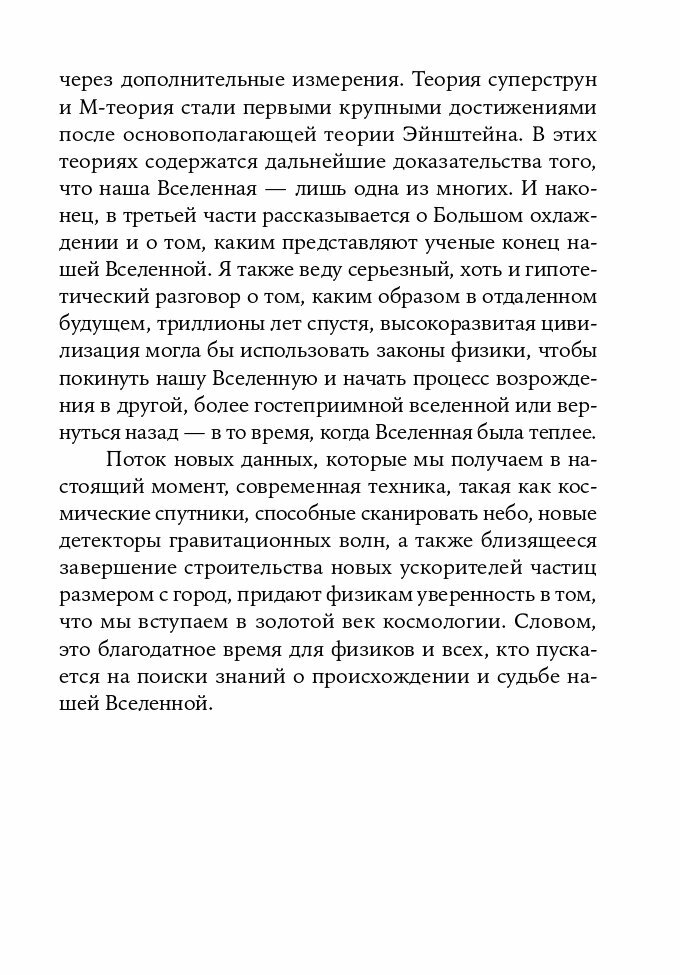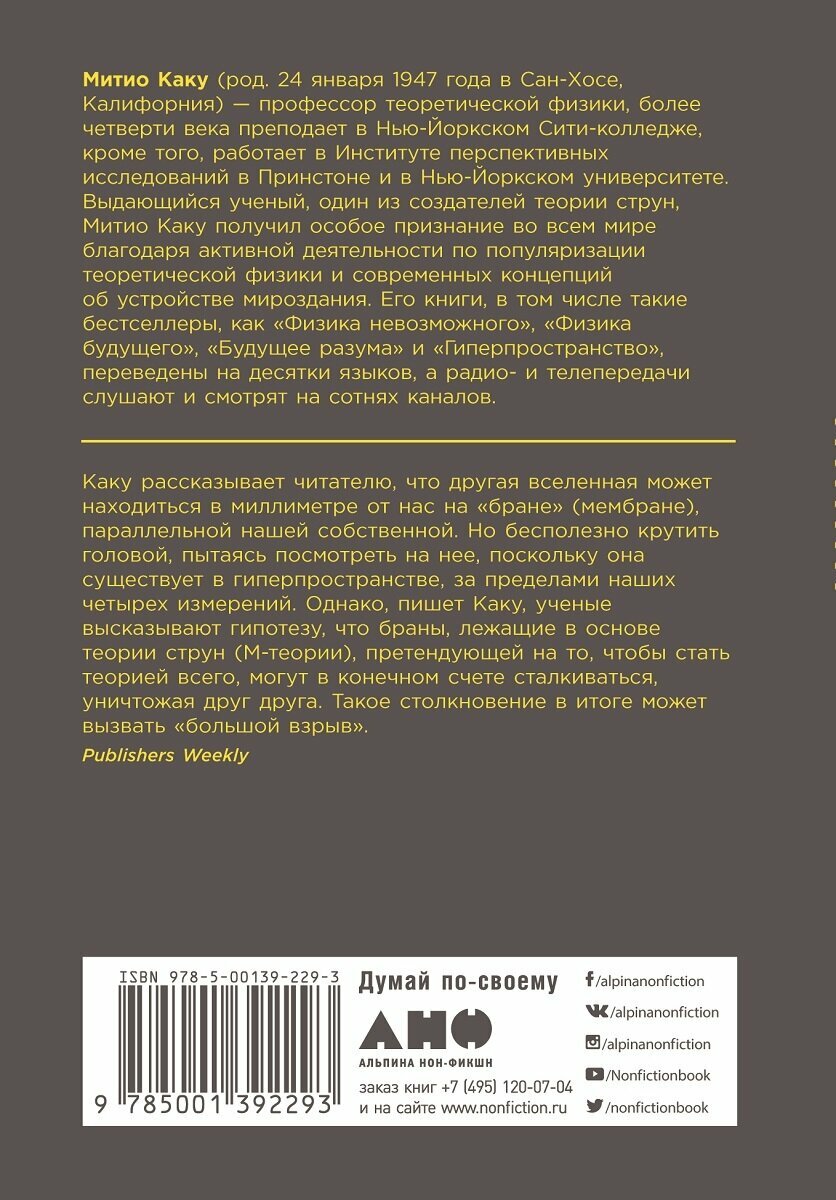 « Параллельные миры. Об устройстве мироздания, высших измерениях и будущем космоса ». Митио Каку — величайший деятель. Он всех огромный вклад в физическую науку, и я очень рад, что замечательное издание появилось в продаже а русском переводе. Если некоторые проблемы в этом самом переводе, и из-за этого иногда тяжко понимать, что к чему, и что пытается высказать автор. А так страницы довольна качественные, правда, переплет мягкий, поэтому переламывается.