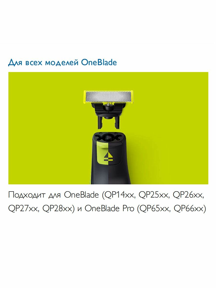 | Совместимость с моделями | Philips OneBlade Pro QP65xx, Philips OneBlade Pro QP66xx, Philips OneBlade QP25xx, Philips OneBlade QP26xx |