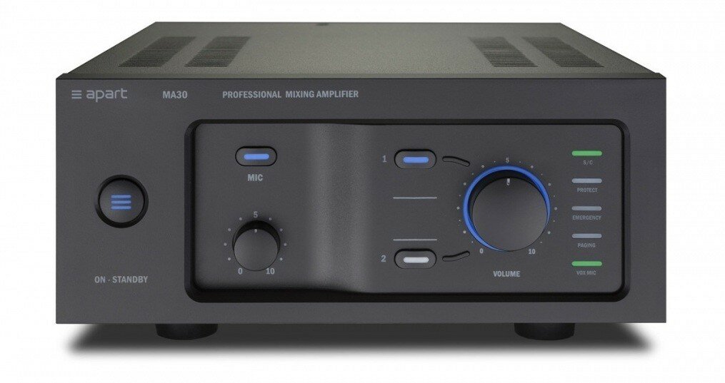 Благодаря интеллектуальной системе маршрутизации звука с 4 уровнями приоритета и логично скомпонованной задней панелью пользователю не составит никакого труда разобраться с подключением. Среди прочего на задней панели Apart располагаются входы для сигнала экстренного оповещения и пейджингового микрофона с тональным сигналом Chime. А также выход 24 В постоянного тока, для отключения регуляторов громкости серии E-VOL. Этот прогрессивный микшер-усилитель удивительно прост и понятен в монтаже и эксплуатации.