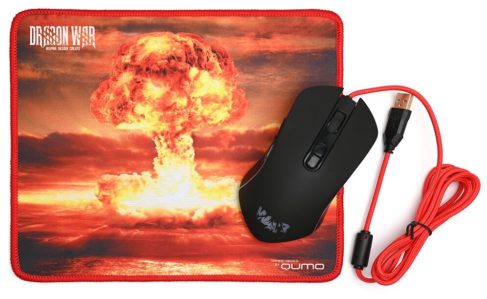 Wartime! Время наступать и обрушится на противника со всей мощью! В этом наборе от компании Qumo много света и цвета. RGB подсветка клавиатуры и мыши, коврик с агрессивным, ярким рисунком – всё это составляет готовое решение для игр, работы и оформления компьютерного места. Средние и вес и размеры достаточно универсальны, манипулятором удобно пользоваться. Кабель в оплетке не будет вносить искажения в активные игровые действия пользователя.