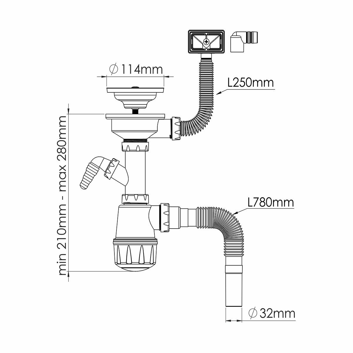 - Сетчатый выпуск-чашка из нержавеющей стали диаметром 114 мм.