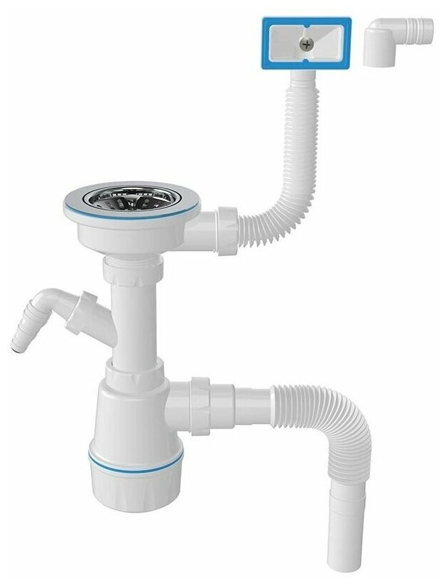 Сборка сифона на мойку с большой горловиной и переливом + замена