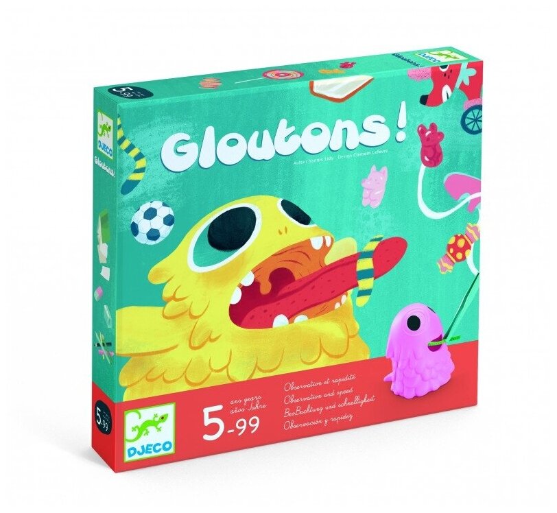 от французского бренда Djeco порадует малышей от 5 лет. Маленькие прожорливые монстры готовы съесть всё, что плохо лежит в комнате! Чтобы быстрее всех скормить монстрам нужные предметы, понадобится хорошая реакция и внимание.
