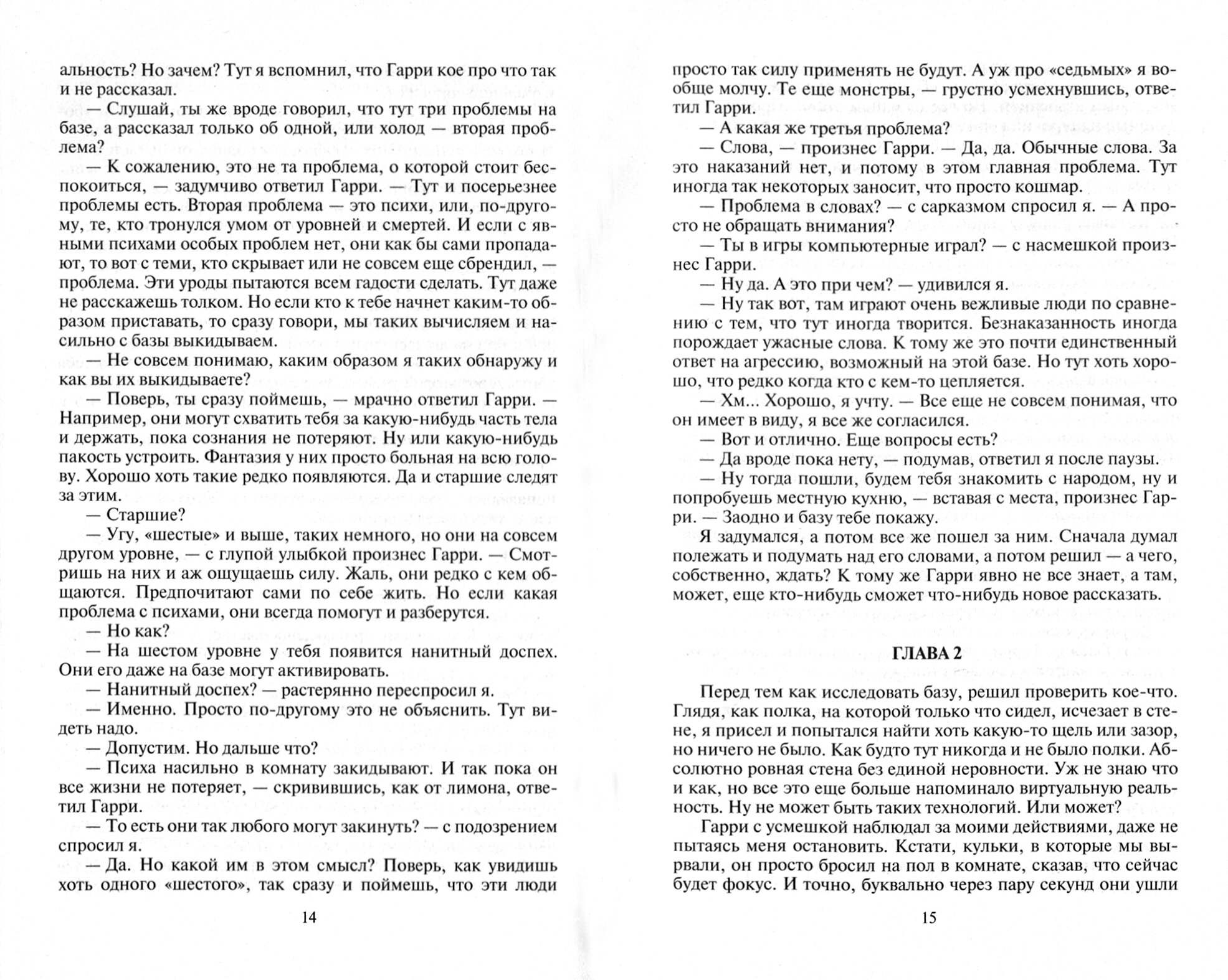 Начало интригует: главный герой умирает и оживает на какой-то базе, наполовину находящейся в реальности, а наполовину — в виртуальности. То есть, ход со смертью — не новый, половина попаданцев начинают свои приключения, умерев, но неожиданно место, откуда стартует действие.
