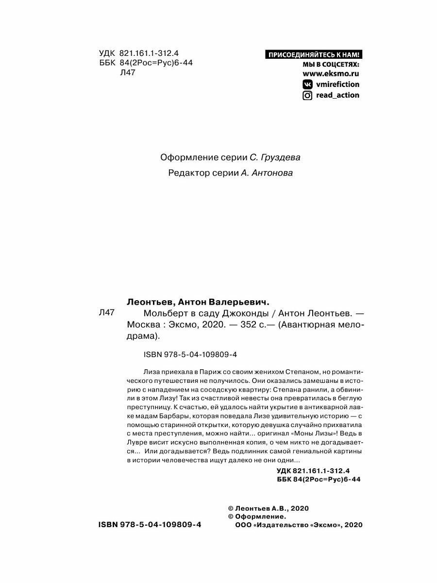 Книга: Мольберт в саду Джоконды (Антон Валерьевич Леонтьев); Эксмо, 2020