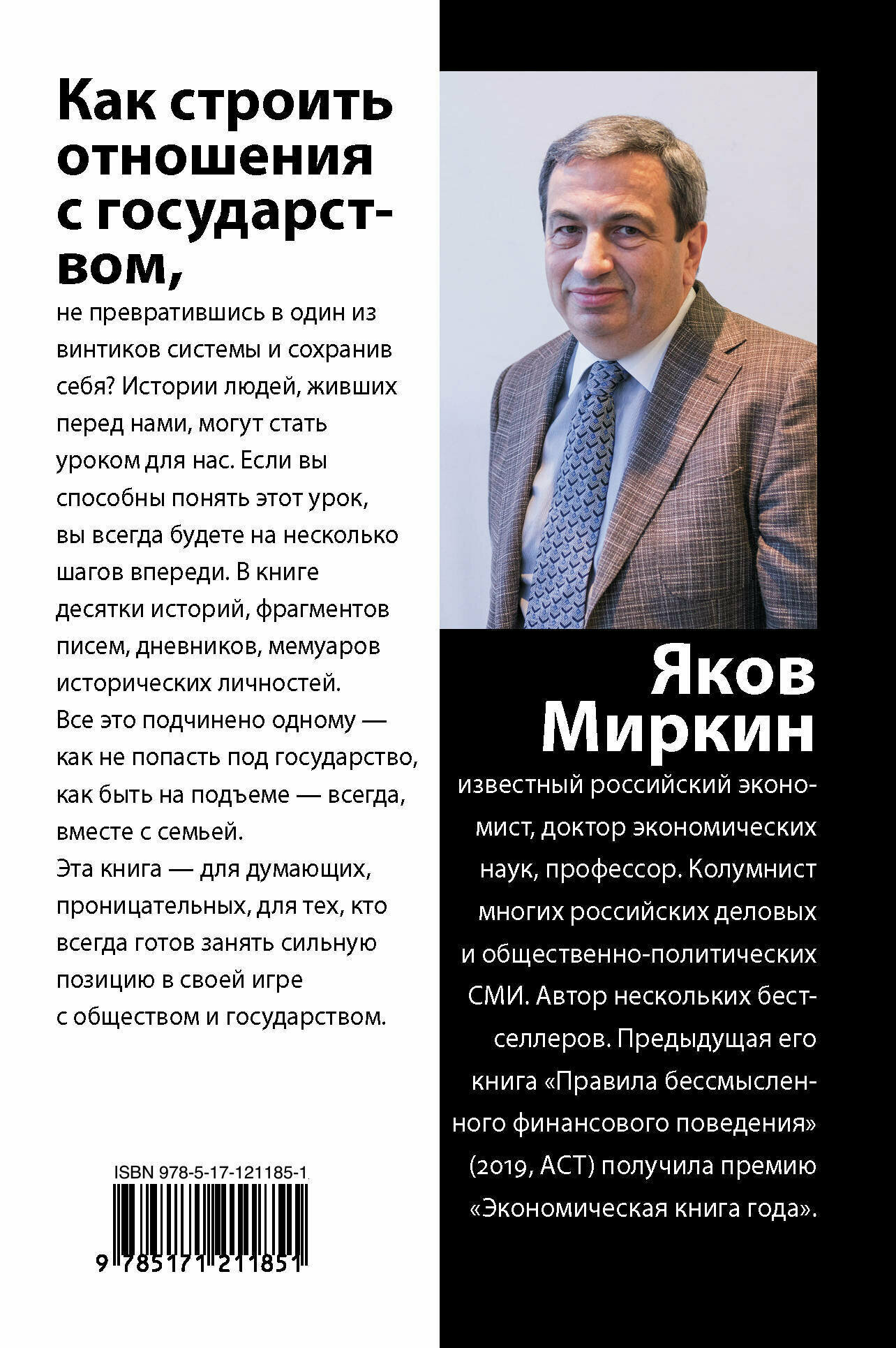 Темой новой книги известного российского экономиста Якова Миркина стали отношения между государством и личностью. Как не превратиться в один из винтиков огромной государственной машины и сохранить себя, строя собственные отношения с государством и с личностями в нем? Истории людей, живших перед нами, могут стать уроком для нас. Если вы способны понять этот урок, вы всегда будете на несколько шагов впереди. В книге десятки историй, фрагментов писем, дневников, мемуаров исторических личностей. Всё это подчинено одному - как не попасть "под государство", как быть на подъеме - всегда, вместе с семьей. Эта книга - для думающих, проницательных, для тех, кто всегда готов занять сильную позицию в своей игре с обществом и государством.