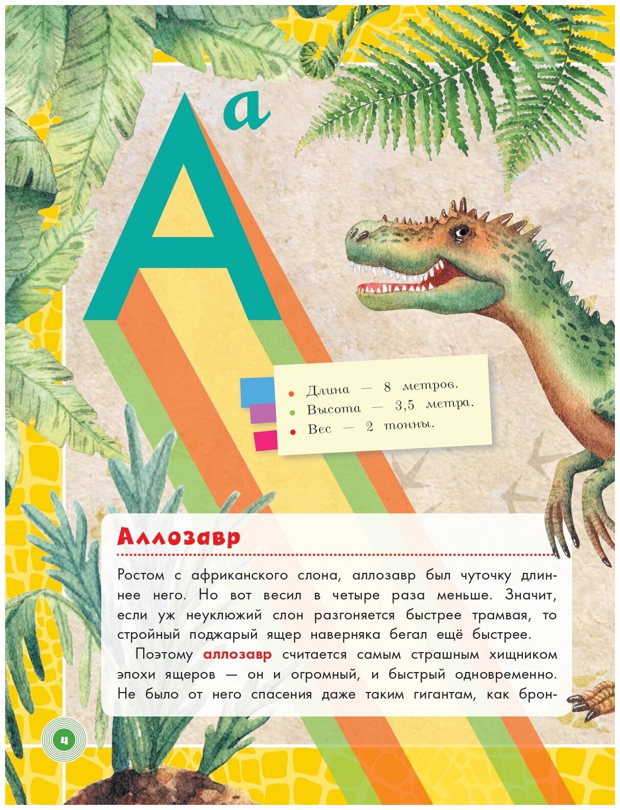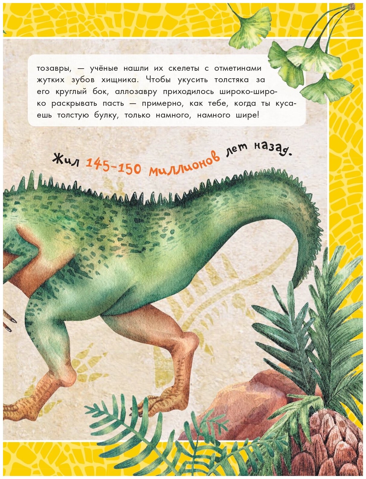 Из этой книги можно узнать, как выглядел археоптерикс, у каких динозавров на голове росла мощная шишка, где жили огромные аргентинозавры.