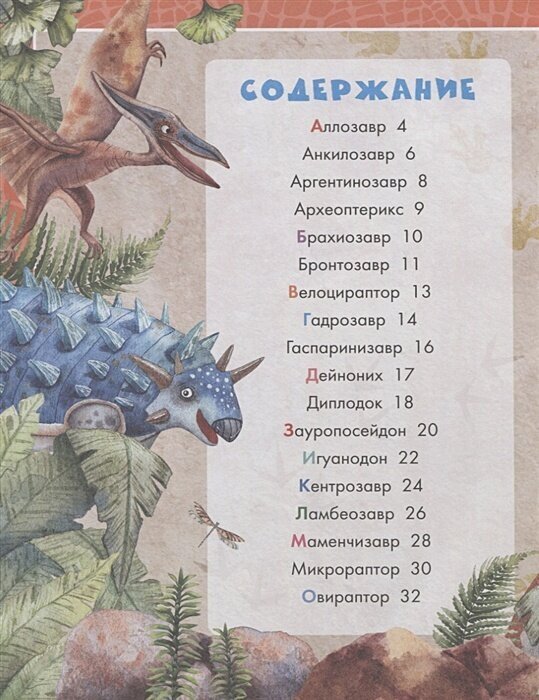 Все динозавры даны в алфавитном порядке, что очень удобно.