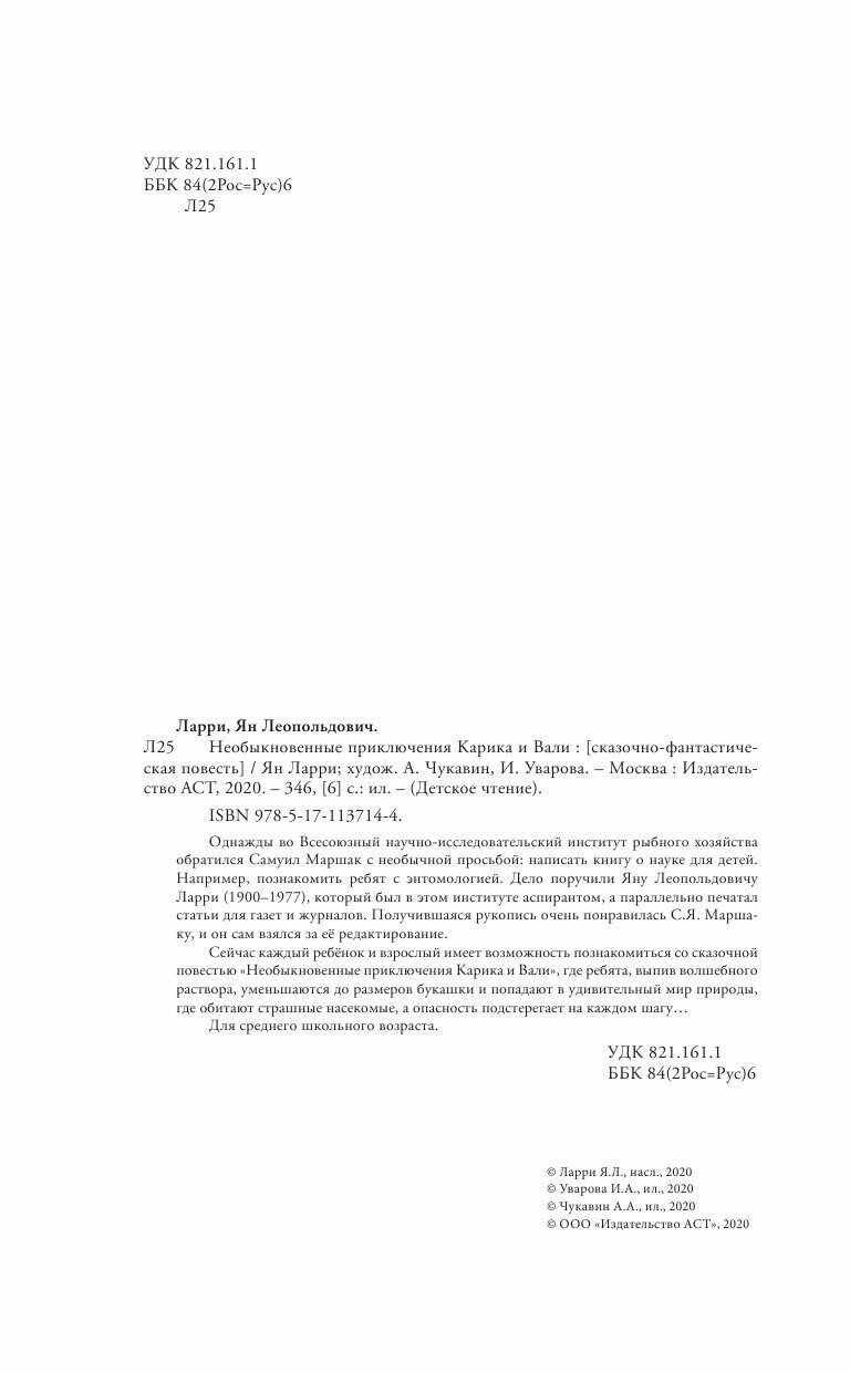 Сервис сравнения цен СкидкаГИД предлагает сравнить цены на товар «Книга: Необыкновенные приключения Карика и Вали (Ларри Ян Леопольдович); ИЗДАТЕЛЬСТВО "АСТ", 2020»