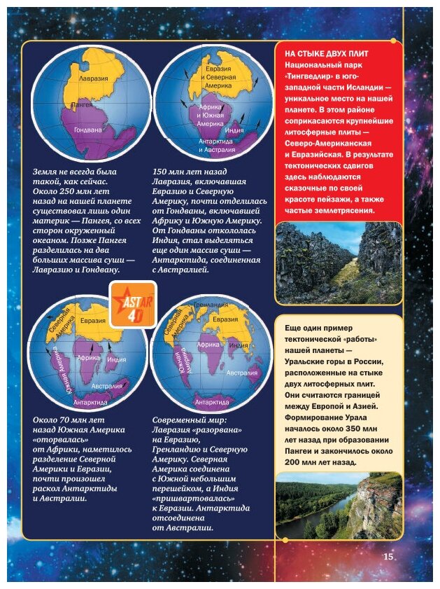 Эта 4D-энциклопедия с дополненной реальностью расскажет о нашем общем доме - планете Земля. Увлекательное путешествие от Большого взрыва и появления материи через зарождение жизни в древнем океане до многообразия современного растительного и животного мира ждет читателя в этом необычном издании. А 4D-анимации не только оживят древнего динозавра, стремительного гепарда или крошечную колибри, но и заставят материки двигаться, вулкан извергаться, а дождь и снег идти прямо на страницах книги. Каждая "живая" картинка сопровождается звукозаписью с познавательной и интересной информацией. Откройте эту энциклопедию и узнайте все о нашей уникальной планете и о том, что на ней происходит.