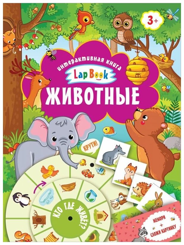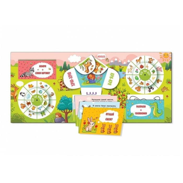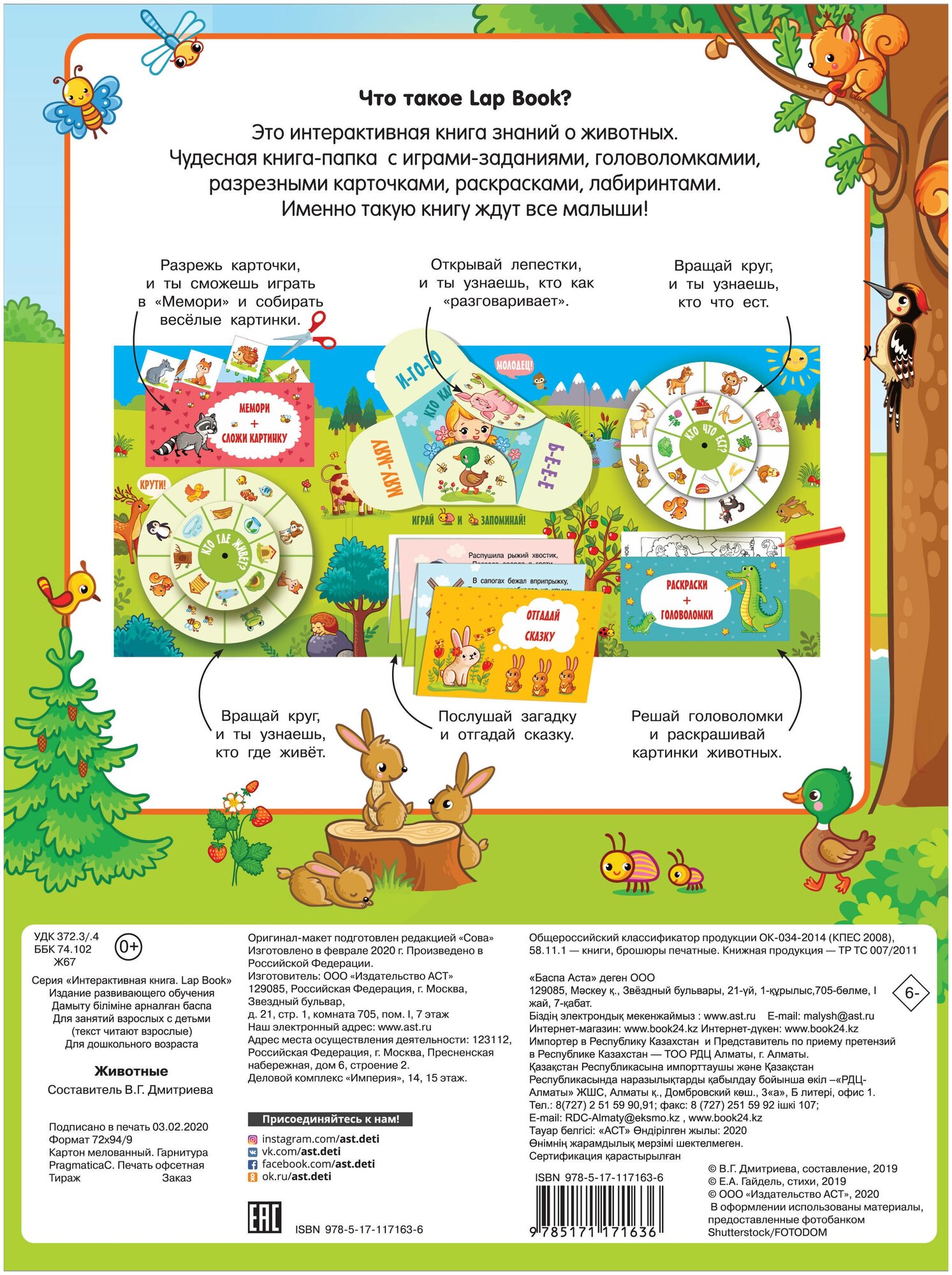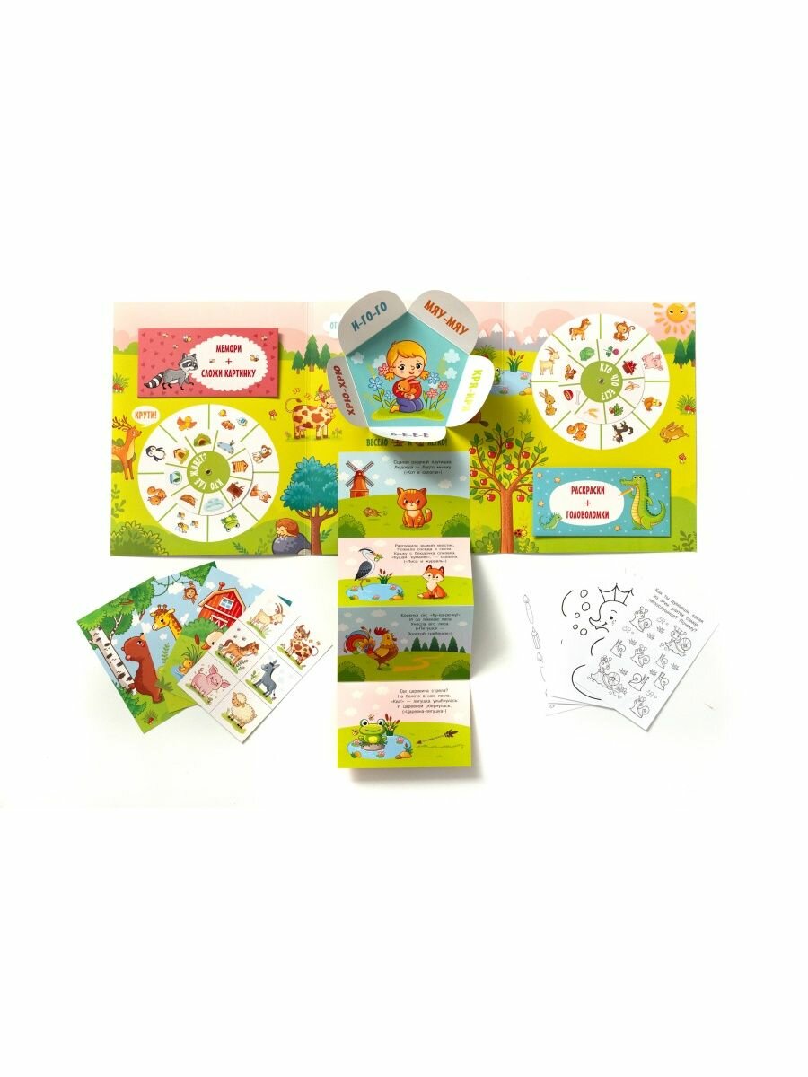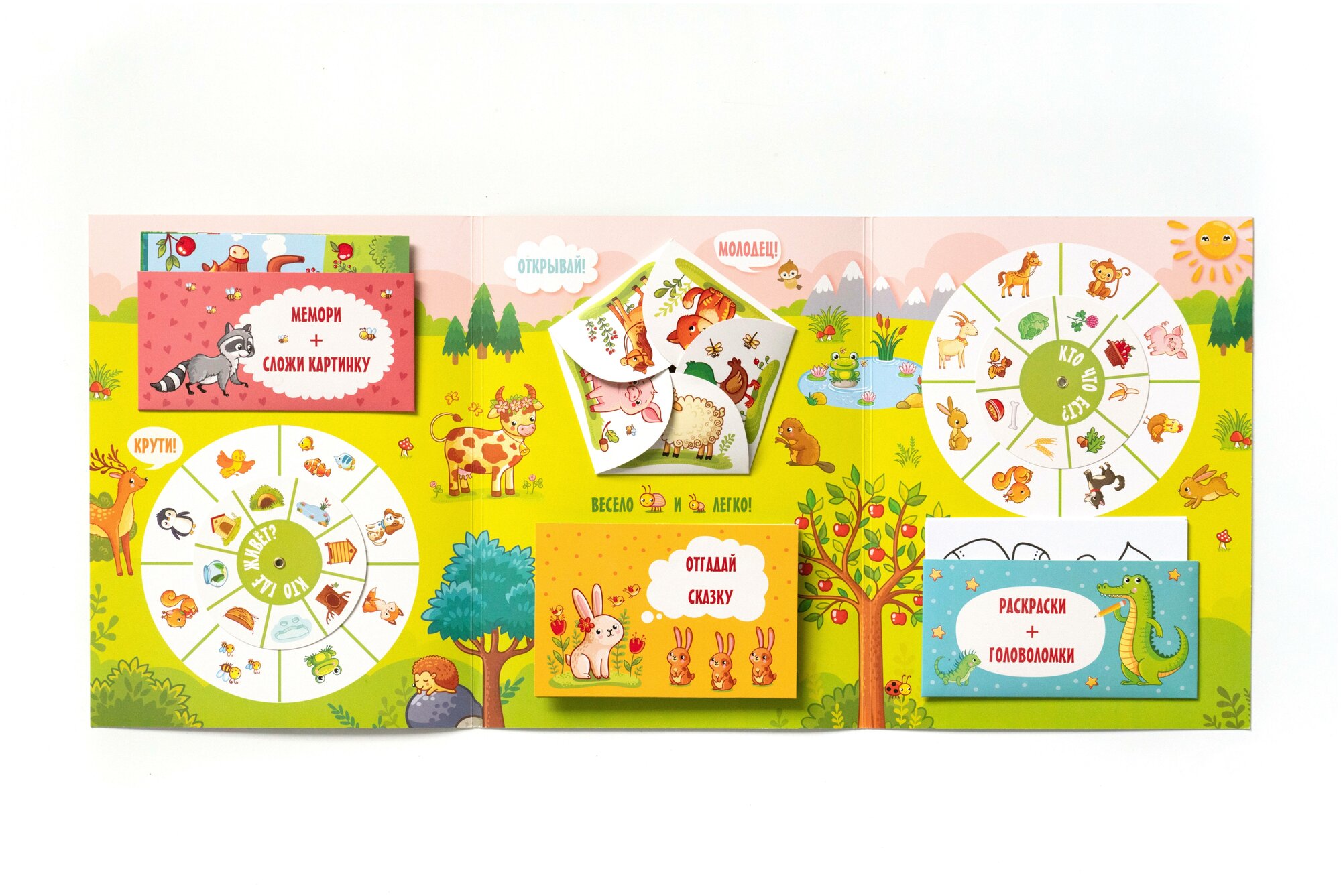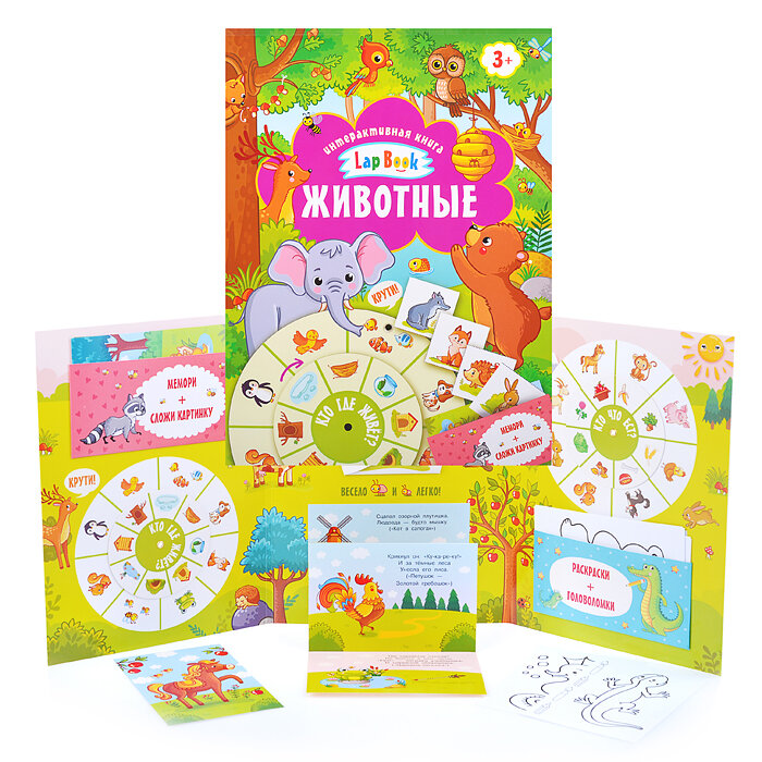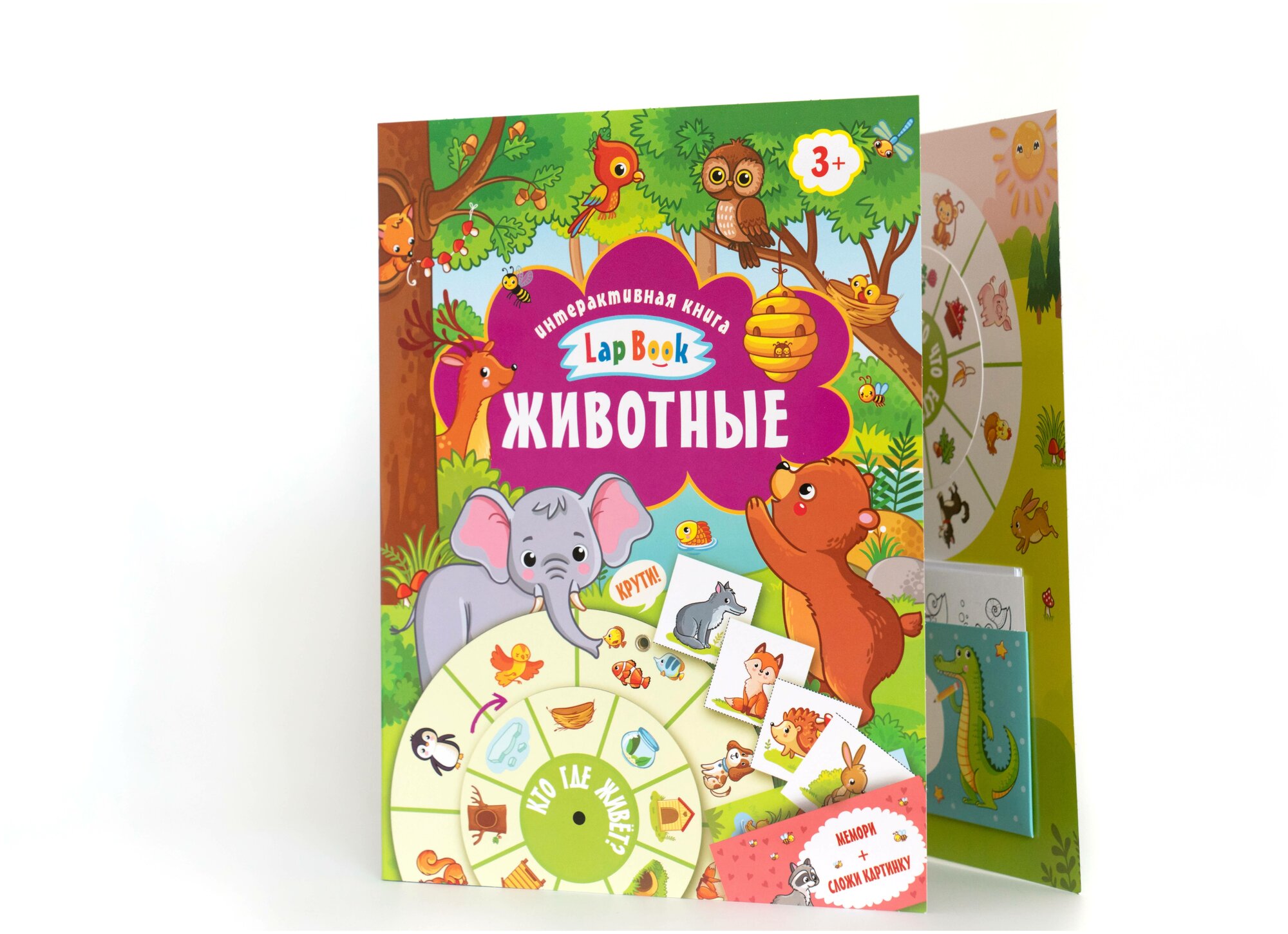Лэпбук - большая красочная интерактивная книга-папка увлекательных развивающих игр "Животные". Это коллекция самых интересных активити-заданий для дошколят: лото, разрезные картинки, карточки-раскраски, книжка-гармошка с загадками, кармашки с забавными картинками животных, игры для развития внимания, памяти, логического мышления и мелкой моторики. Оригинально оформленная большая красочная папка надолго заинтересует малыша - ведь необычные детали, крутящиеся и раскладные модули требуют от ребёнка действий, непосредственного участия. Открыв эту необычную книжку с яркими подвижными элементами, ребёнок сможет поиграть и узнать много нового и интересного о мире животных.