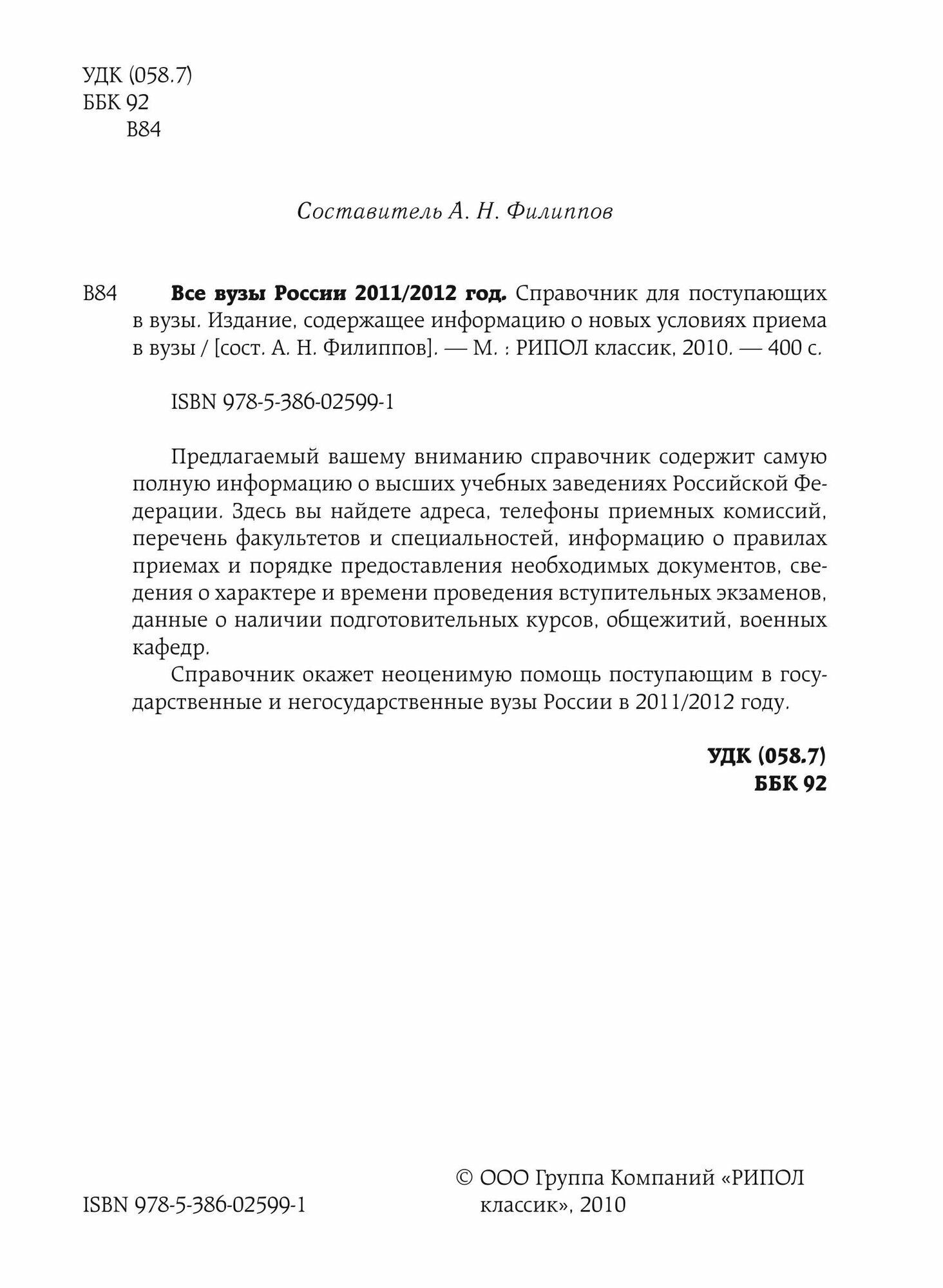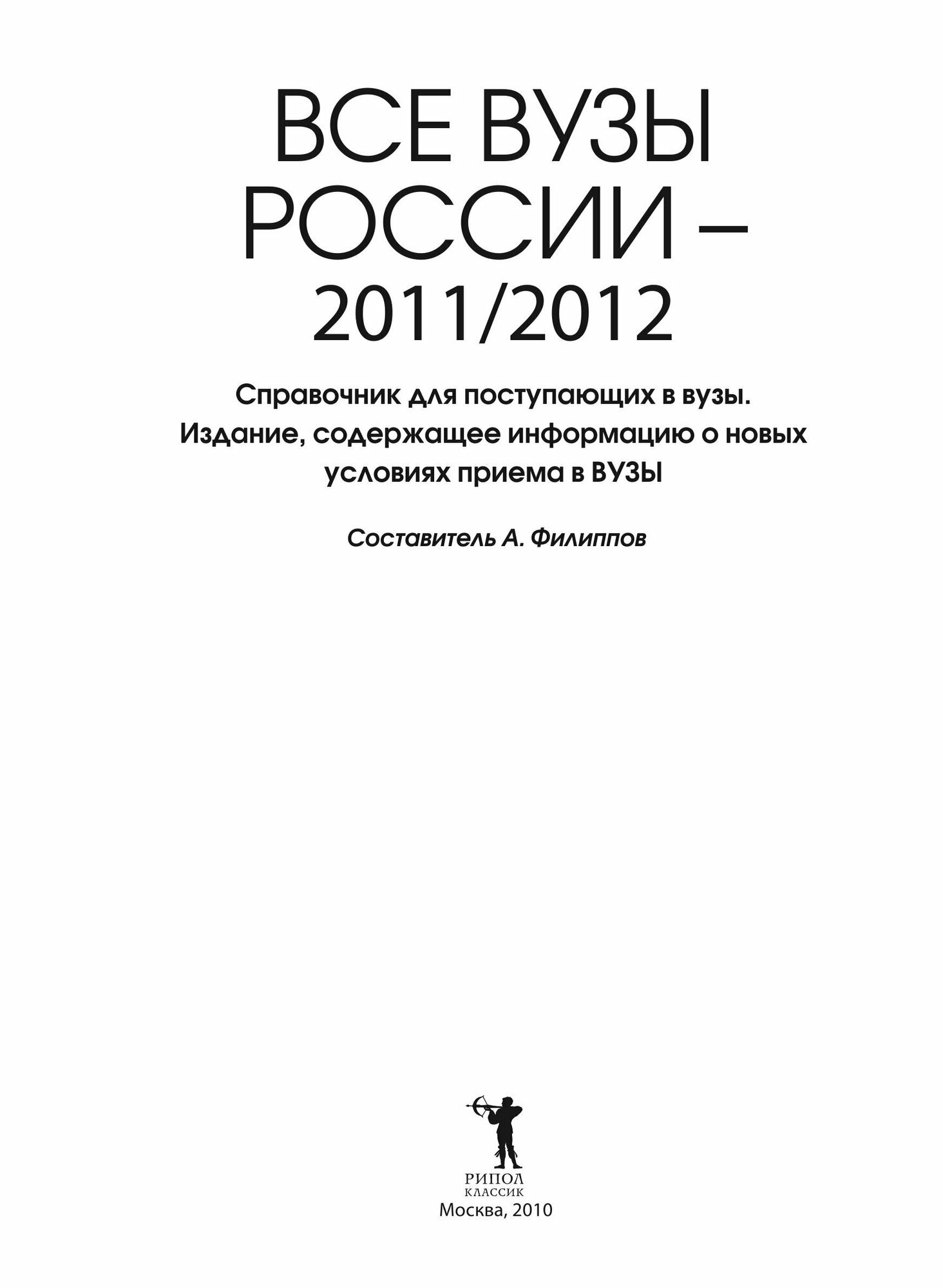 Все вузы России 2011/2012. Справочник для поступающих в вузы. Издание содержащее информацию о новых условиях приема в ВУЗы (Филиппов Александр Никитич), 2010