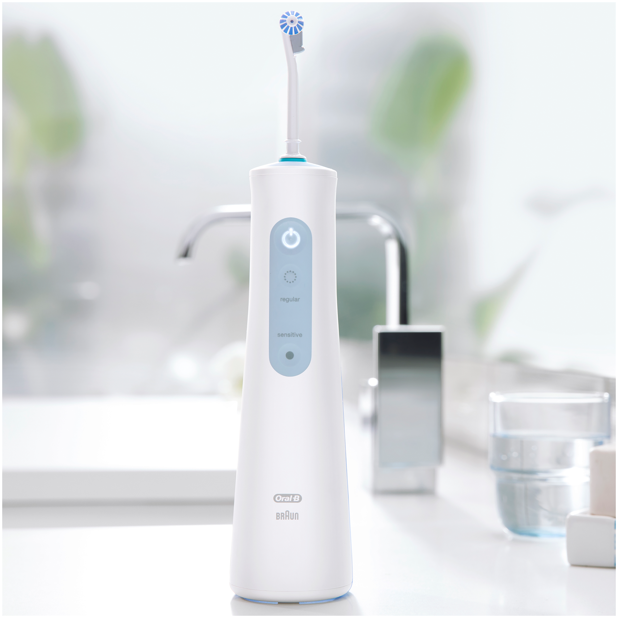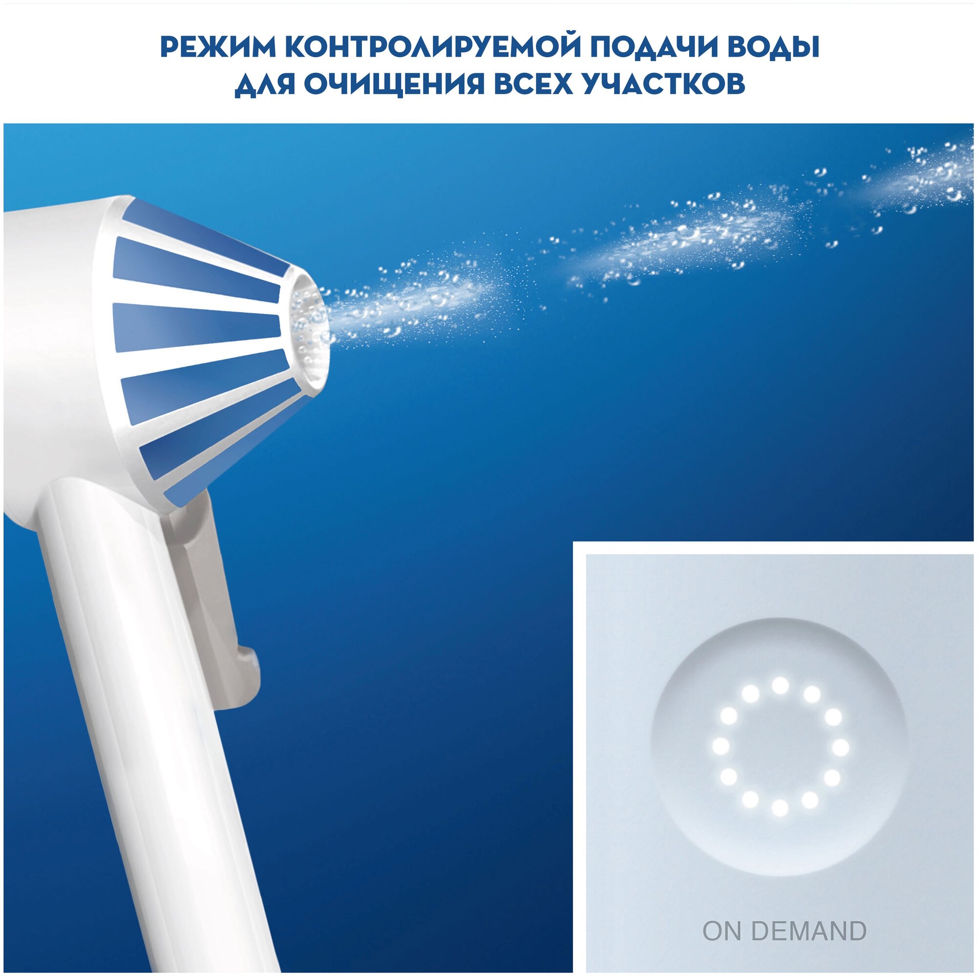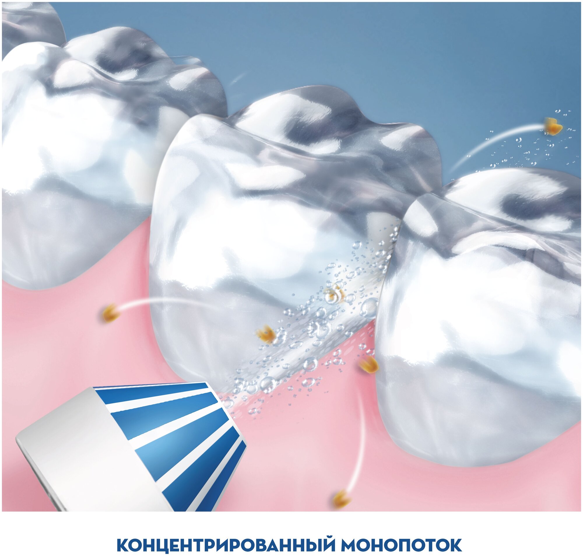 Ирригатор Oral-B OXYJET имеет два уровня давления при подаче воды для очистки зубов струей и деликатного массажа десен. Регулярное применение устройства обеспечивает профилактику здоровья полости рта. В конструкции есть резервуар для воды объемом 145 мл, чего достаточно для одной тщательной очистки. Компактный размер и небольшой вес устройства создают комфортные условия при хранении и в процессе транспортировки.Модель Oral-B OXYJET насыщает воду микропузырьками, что обеспечивает качественное очищение и защищает десны от воспаления. Ирригатор удаляет остатки пищи в брекет-системах и межзубном пространстве. Устройство позволяет ухаживать за разными участками полости рта в соответствии с рекомендациями стоматологов за счет четырех специальных режимов. Встроенный аккумулятор обеспечивает автономную работу модели на протяжении 60 мин. Полная зарядка батареи занимает 14 ч.