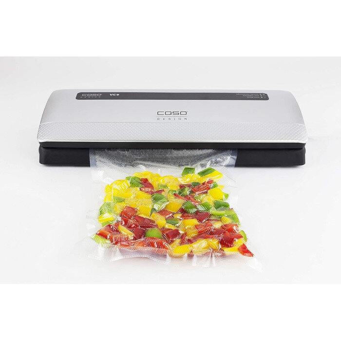 Вакуумный упаковщик CASO обладает мощностью всасывания до 9 литров в минуту со степенью вакуума 90% (-0,7 бар). Полностью автоматическое управление вакуумированием и сваркой пакетов шириной до 28 см, а также возможность создания вакуума в специальных контейнерах (не входят в комплект поставки) будет необычайно удобно для каждой хозяйки. Для упаковки может быть использована доступная в продаже структурированная полиэтиленовая пленка в рулонах или готовые пакеты не более 28 см в ширину и длиной по мере необходимости.