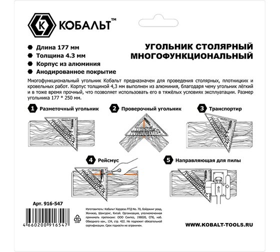 Сервис сравнения цен СкидкаГИД предлагает сравнить цены на товар «Угольник Кобальт столярный 30 см нержавеющая сталь»