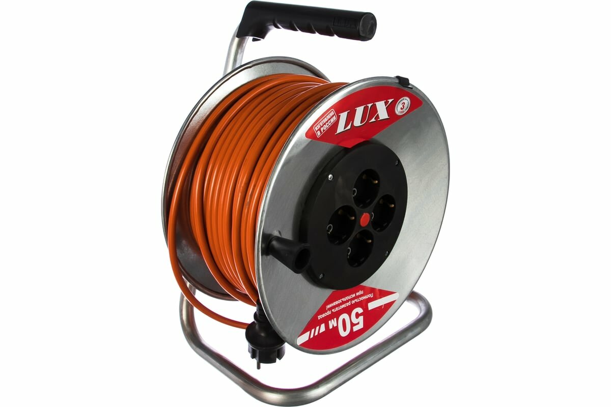 - ОНЛАЙН ТРЕЙД.РУ-Удлинитель силовой на металл. катушке LUX К4-Е-50 ПВС 3x1.5 50м, 16А.