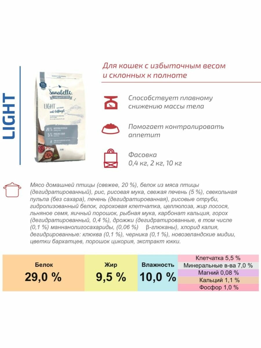 Сухой корм для кошек Sanabelle Light 10 кг