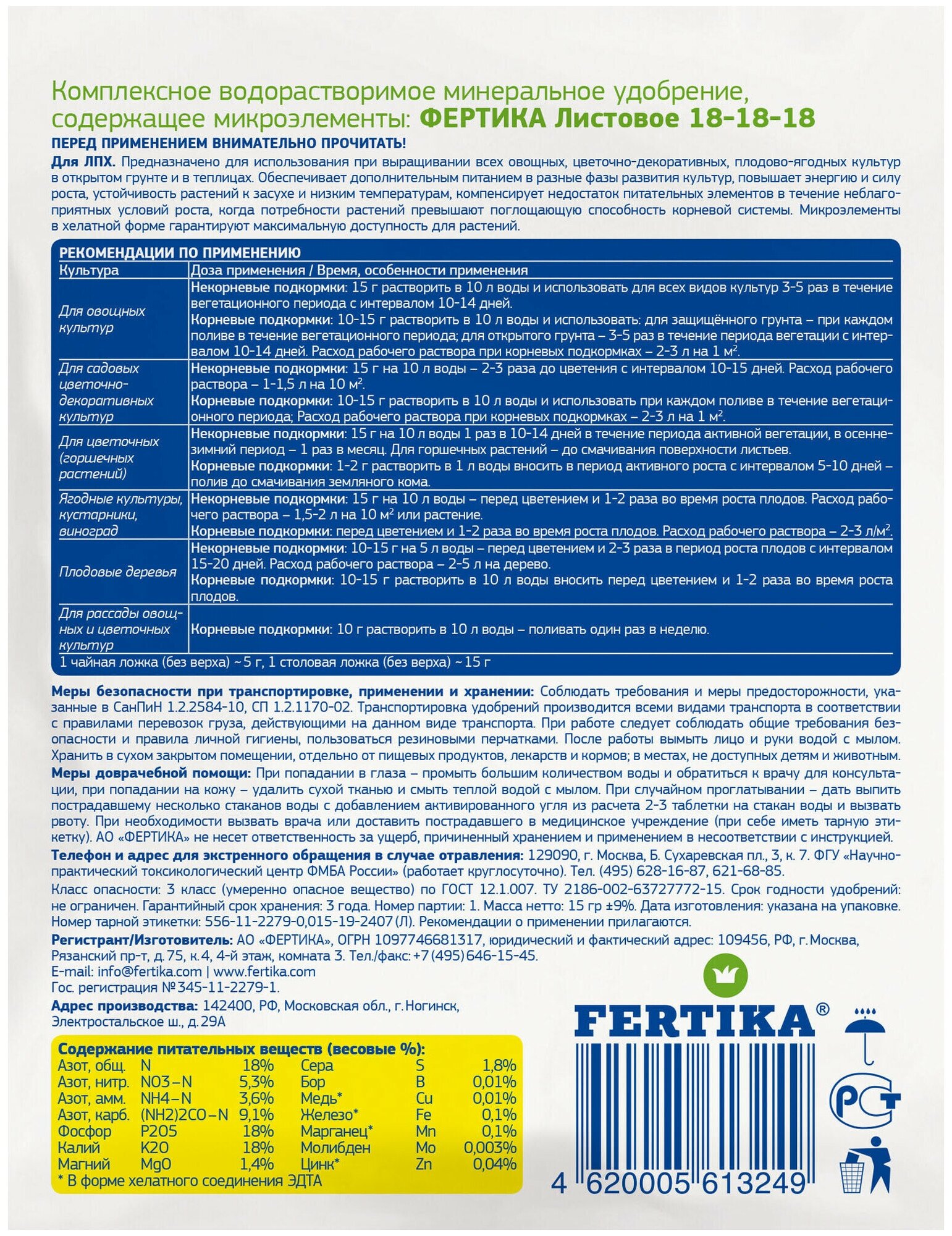 | Состав | NPK 18:18:18 + микро. |