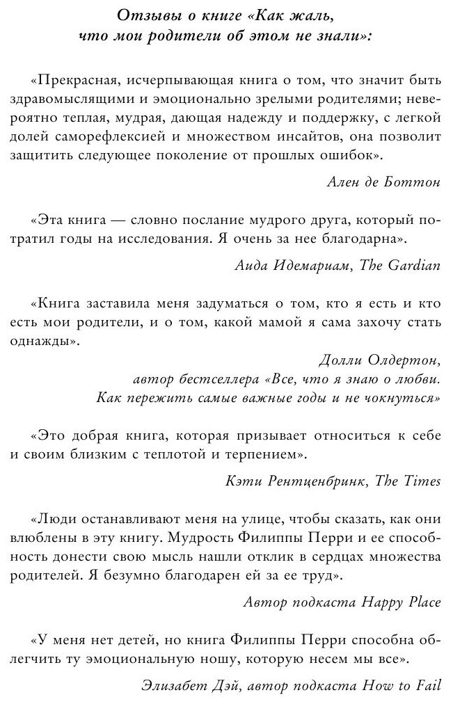 Это замечательная книга. Но она будет полезна не только для родителей, у которых есть дети. Я бы рекомендовал ее всем людям, которые хотят понять, как и почему они стали такими, какие есть. Это размышляющий, спокойный и чрезвычайно полезный материал про то, как мы взаимодействуем друг с другом. В этой книге есть различные практики и упражнения, которые помогут читателю лучше понять себя и свою семью.