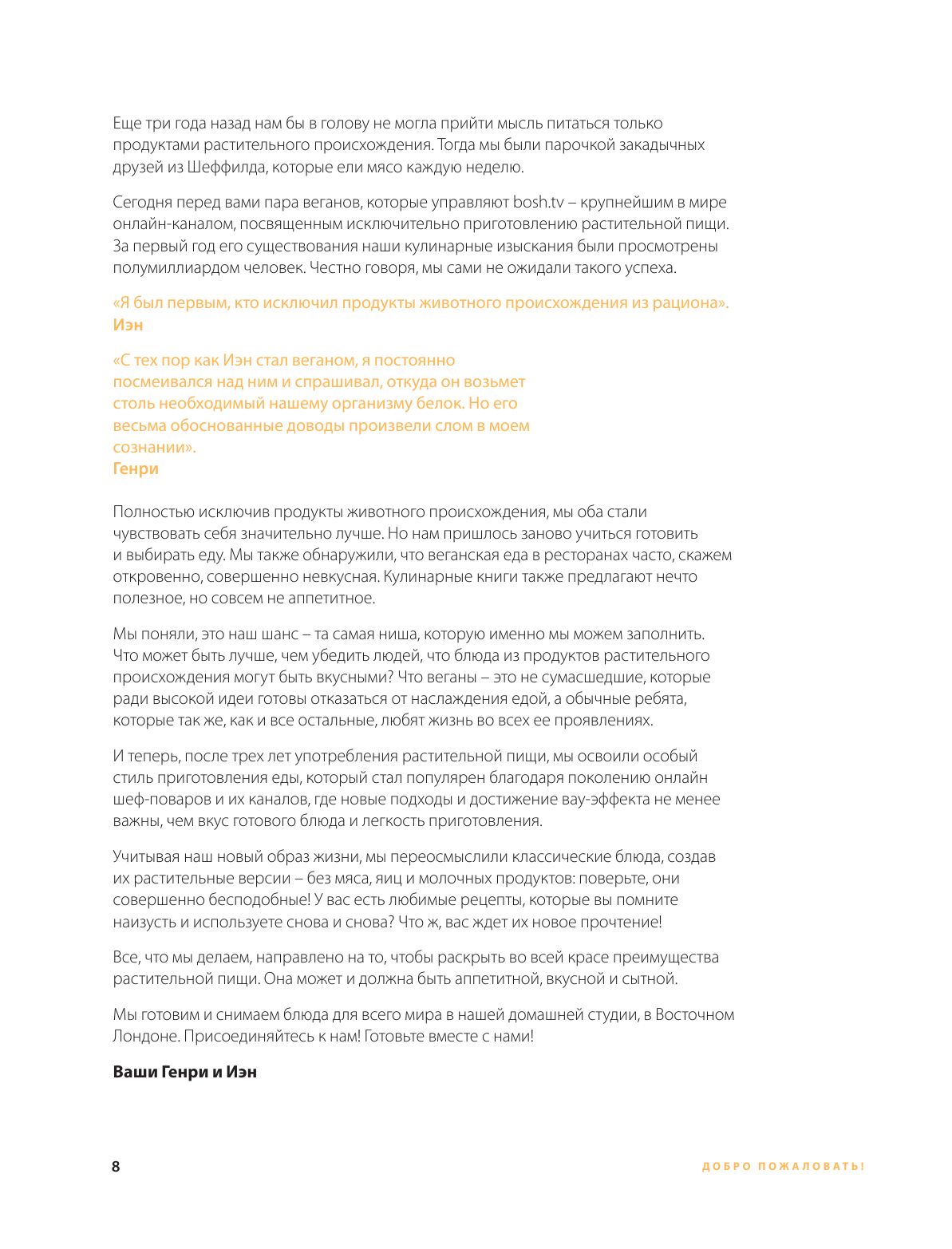 Веганы - инопланетяне, не иначе! Как можно прожить без животных белков? Как можно не испортить без них здоровье и характер? Эти вопросы кружатся в вашем мозгу, верно? Мы хотели бы, чтобы вы ответили на них, и поэтому предлагаем заглянуть в нашу книгу. Иэн и Генри, основатели bosh.tv - крупнейшего в мире онлайн-канала, посвященного исключительно приготовлению растительной пищи, - три года назад были обычными мясоедами! Поэтому их предложение попробовать изменить обычную пищу на растительную выглядит вполне убедительно. Они переосмыслили классические блюда, создав их растительные версии - без мяса, яиц и молочных продуктов. Кроме того, их рецептура разработана до мельчайших подробностей и опробована на их большой команде, блюда по времени предложены как быстрые, готовящиеся не более 30 минут, так длительные, для особых дней, и всего 140 авторских рецептов. Вот это да! Любопытно попробовать.