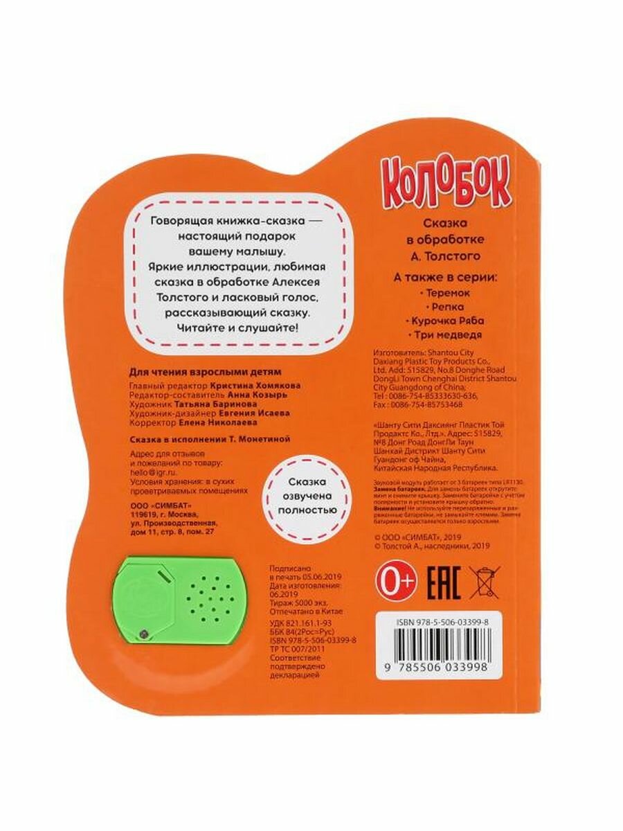 Колобок. Говорящая сказка (Толстой Алексей Николаевич); Умка, 2019